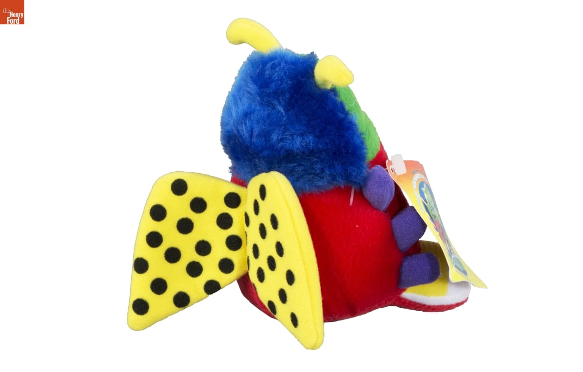 on front: Y2K on front of tag sewn on bottom of toy: y2K / TM 1998 LOOKING GLASS PARTNERS, LLC on back of tag sewn on bottom of toy: NOT FOR CHILDREN UNDER 3 YEARS / REG. NO. PA 5782 (HK) / ALL NEW MATERIALS / PLASTIC PELLETS/POLYESTER FIBERS / SURFACE WASHABLE / ©1998 PRINCESS SOFT TOYS, INC. / MINNEAPOLIS, MN 55439 / MADE IN CHINA ASI 36235 on front of hang tag: PRINCESS SOFT TOYS PRESENTS / OFFICIAL MERCHANDISE OF THE 21ST CENTURY / FOR THE YEAR 2000 AND BEYOND on back of hang tag: Perpetual curiosity has taken this inquisitive little bug just about everywhere in the world of technology. This guy is here to help find those other pesky computer bugs who are just as mischievous, but not so cute. / Y2K is a registered trademark and licensed property available exclusively through Looking Glass Partners, LLC. Princess Soft Toys, Inc. is a licensee. / Printed in China / (C) Princess Soft Toys / Minneapolis, MN 55439