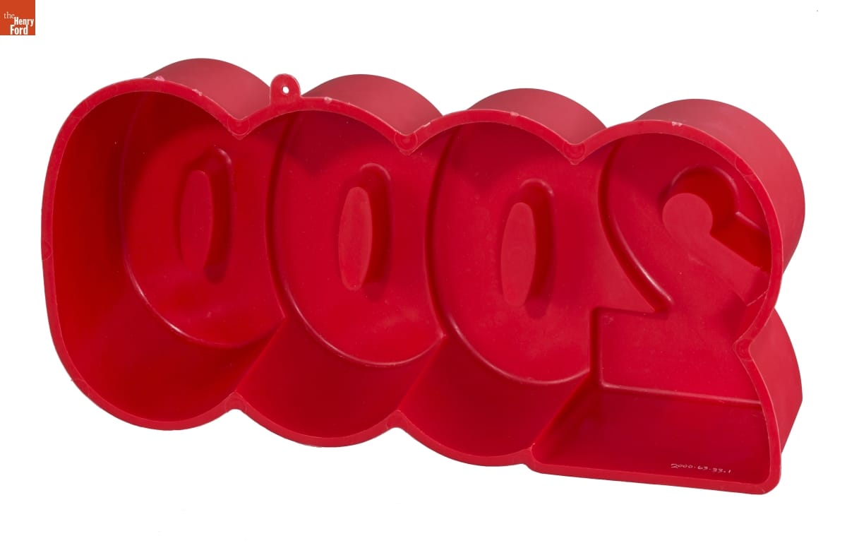 For more than a century, Jell-O has been served at family gatherings, pot-lucks, parties, and barbeques, becoming an American icon. The Jell-O company created this special mold to help customers celebrate Y2K. The person who donated this mold also sent her New Year's Eve Jell-O recipe which called for sparkling club soda, sparkling Jell-O, and champagne. What a way to ring in the new millennium!