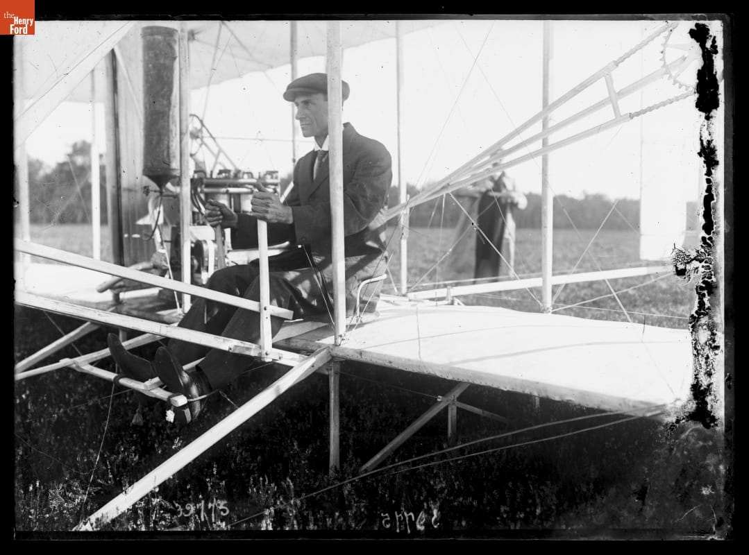 Wilbur Wright Seated in the Flyer, Camp d'Auvours, near Le Mans, France, 1908-1909