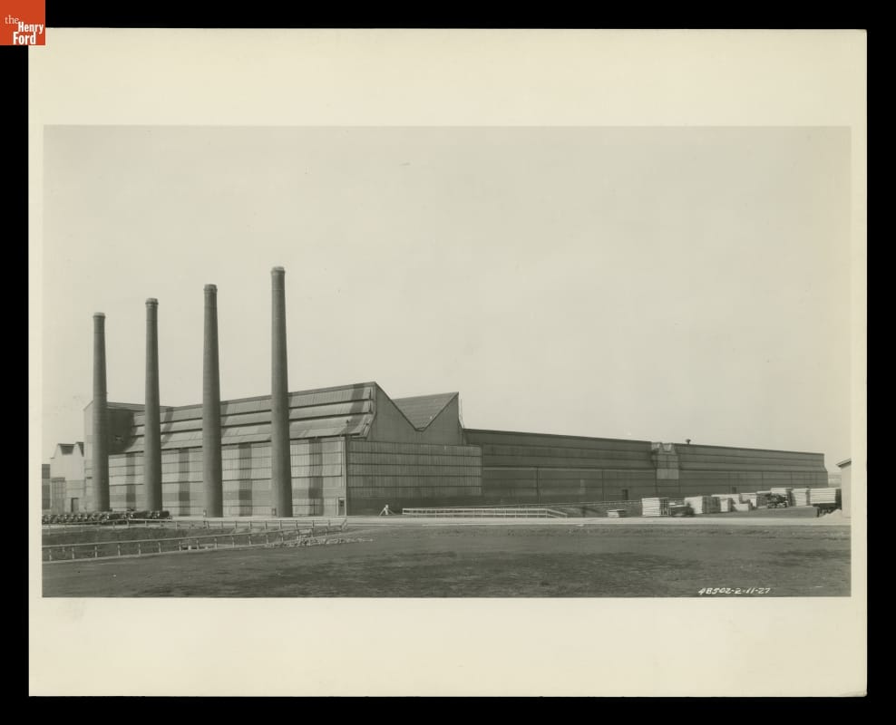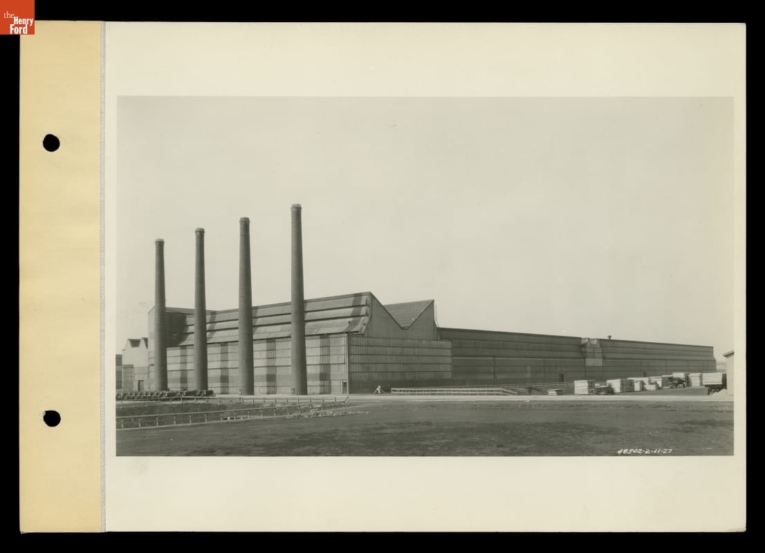 Unsatisfied with glass from outside suppliers, Ford Motor Company established its own glass plant at the Rouge in 1923. Furnaces produced molten glass, while overhead grinders and polishers worked the material to a perfectly smooth and clear finish. Two other Ford glass plants, in Pennsylvania and Minnesota, combined with the Rouge to manufacture 20 million feet of glass each year.