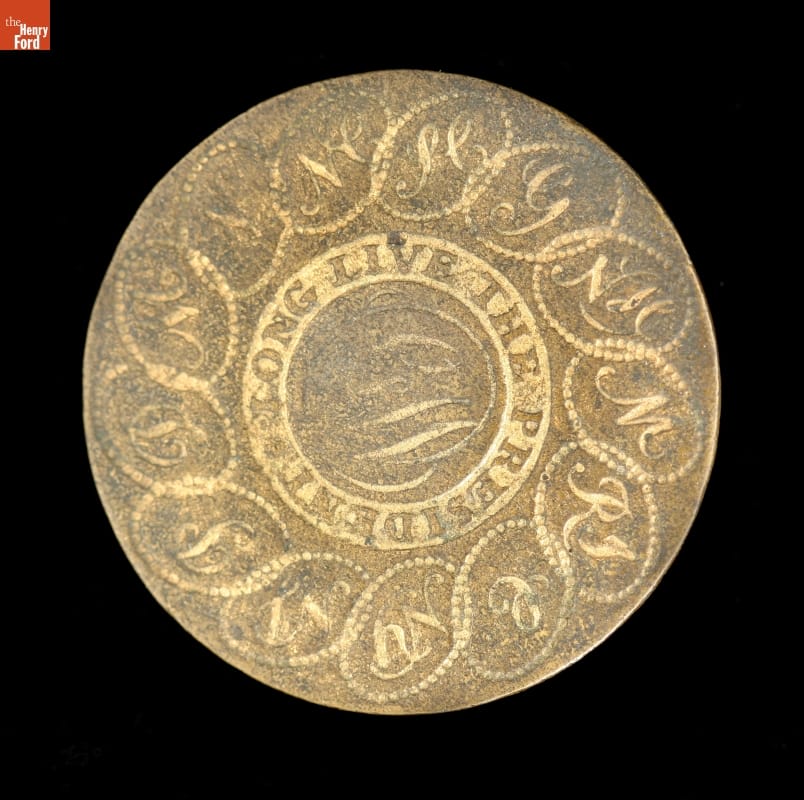 George Washington Presidential Inauguration Button, "Long Live the President," 1789-1793