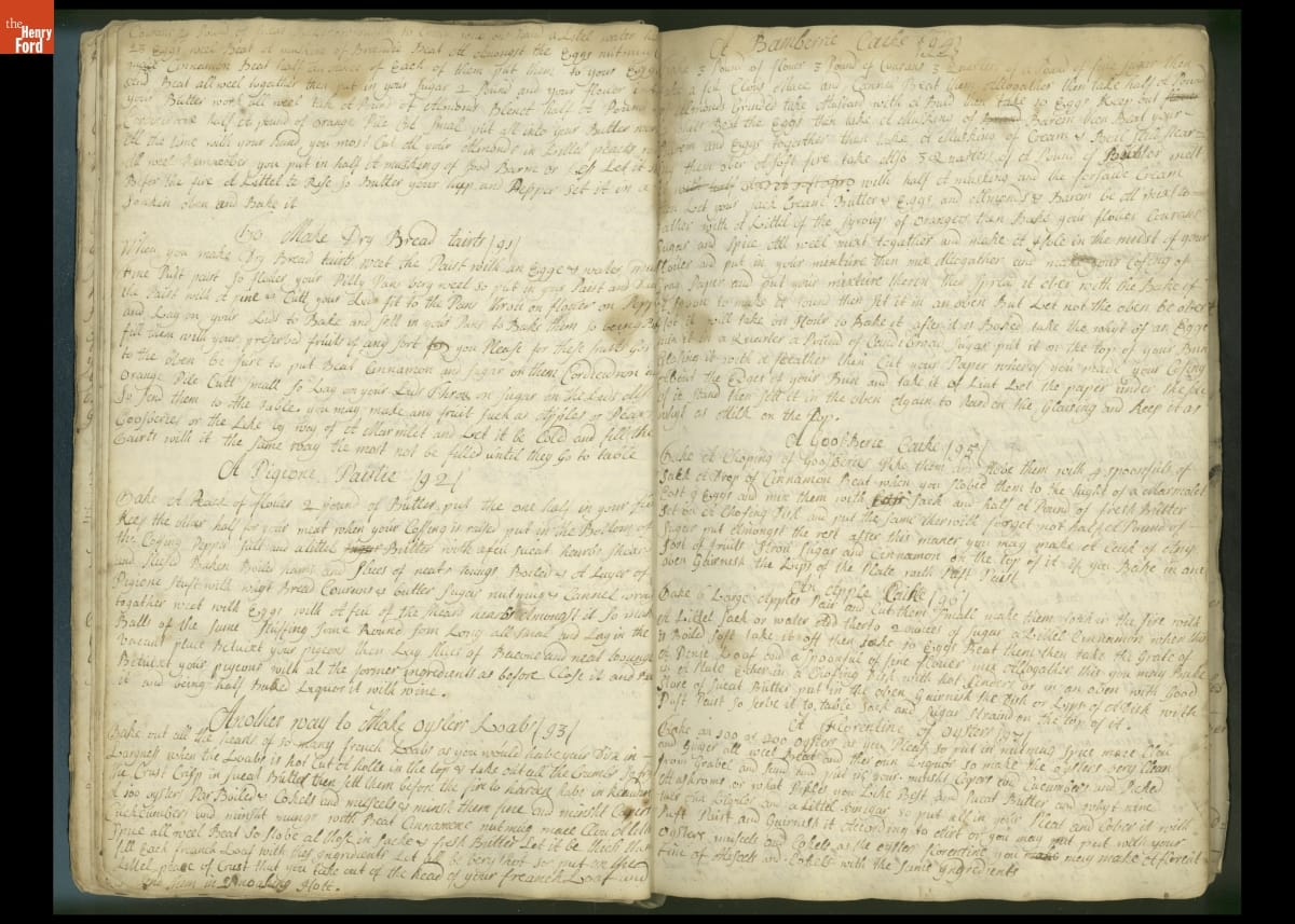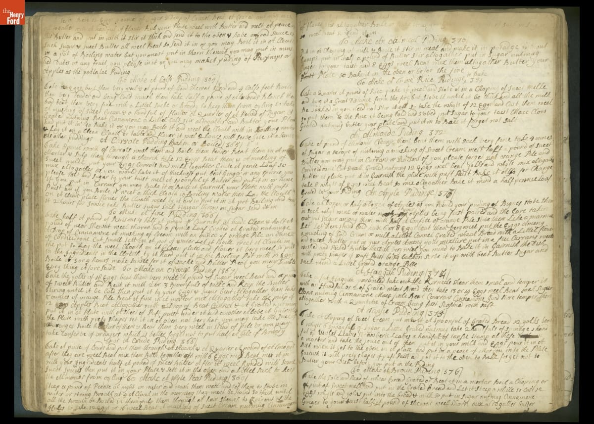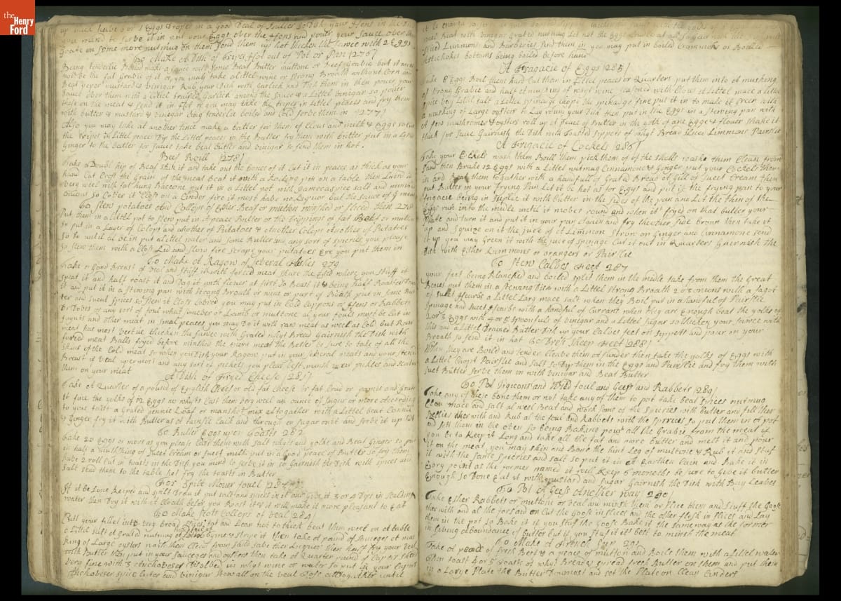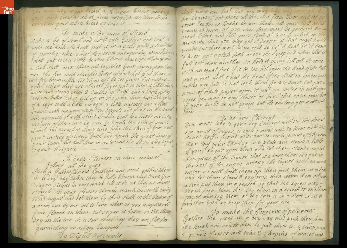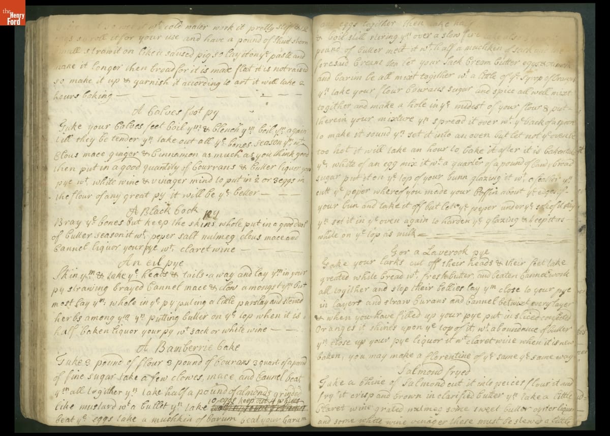 Colonial housewives used recipes handed down from mother to daughter by word of mouth. Women who could read and write might copy down their family recipes in manuscript cookbooks like this one.