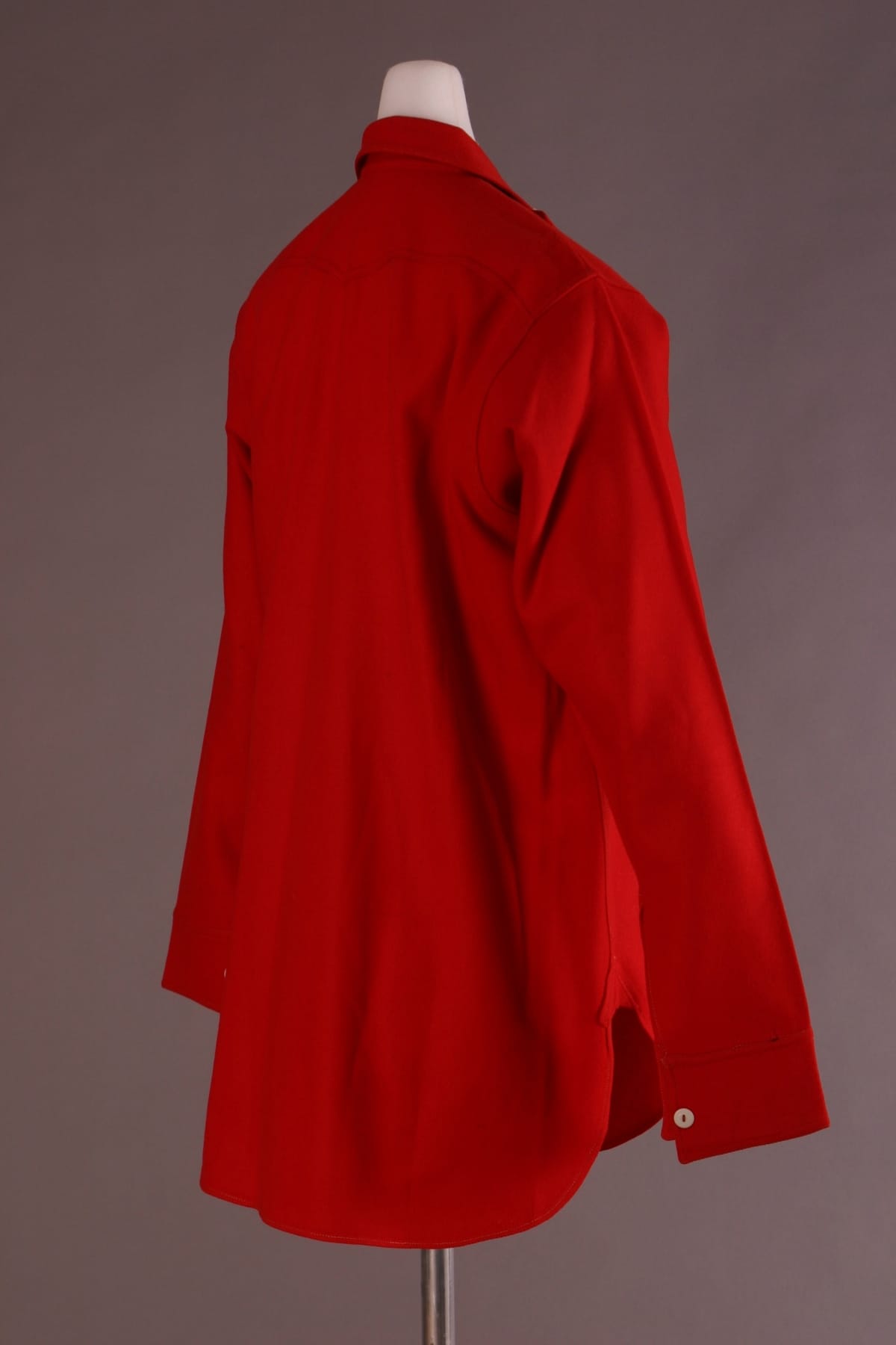 In the decades following the Civil War base ball clubs rapidly came to represent a community's identity and honor. Players donned colorful uniform shirts to make the team readily visible to its supporters and opponents alike. The oversized "A" on this bright red wool shirt would have stood for the name of the community, company, school or club.