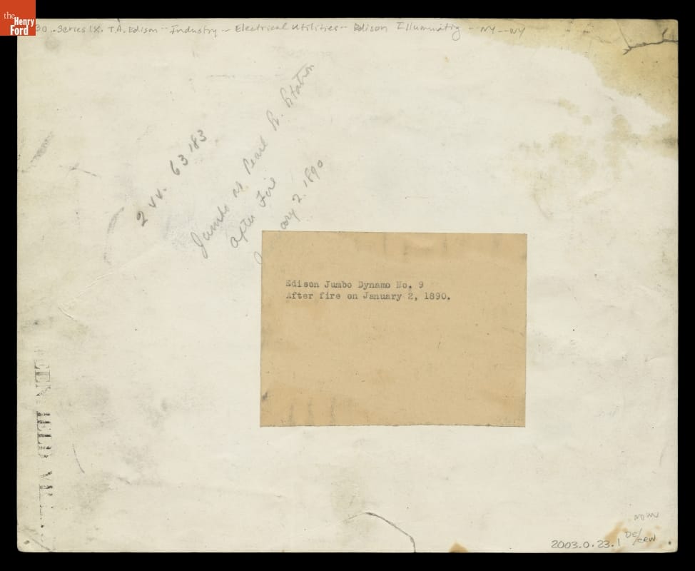 Edison's successful lighting experiments at his Menlo Park laboratory in 1879 bore fruit in the practical system he put into operation in New York City, at the center of which was the Pearl Street power station. This was the first engine-generator to go online providing power to customers on September 4th, 1882. The sole surviving engine-generator from that installation, it is now displayed at Greenfield Village in Dearborn, Michigan.