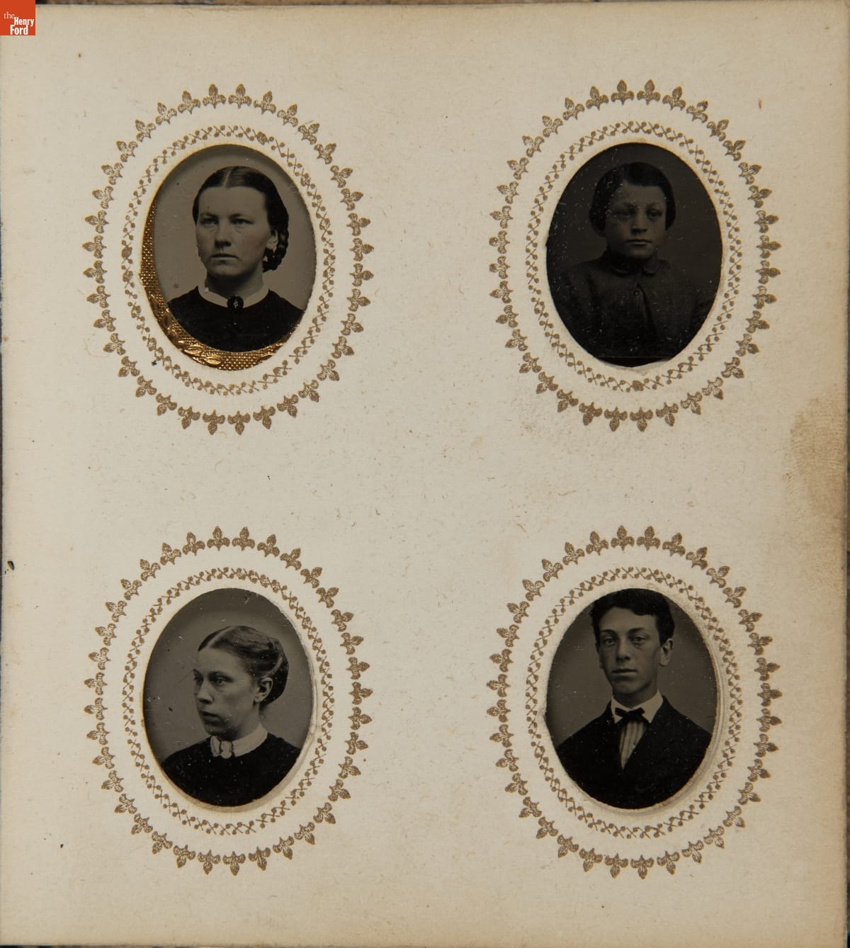 Tintypes, the inexpensive "instant photographs" of the 19th century, gave more people than ever before the chance to have a real likeness of relatives, friends, and themselves. Photograph albums--introduced in the very early 1860s--provided a way to organize, preserve, and conveniently view these images. This album holds "gem" photographs--the smallest tintype, 3/4 to 1 inch in size.