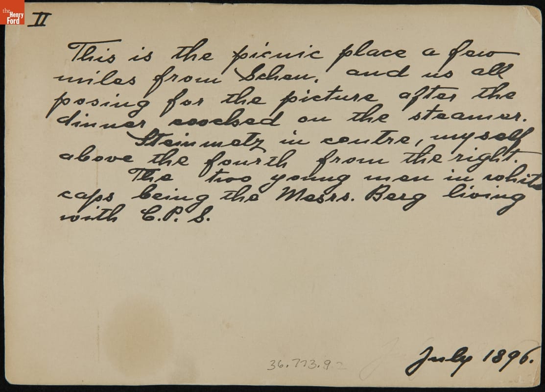 Charles Steinmetz, Clara Steinmetz, Ernst J. Berg and Others On an Outing near Schenectady, New York, July 1896