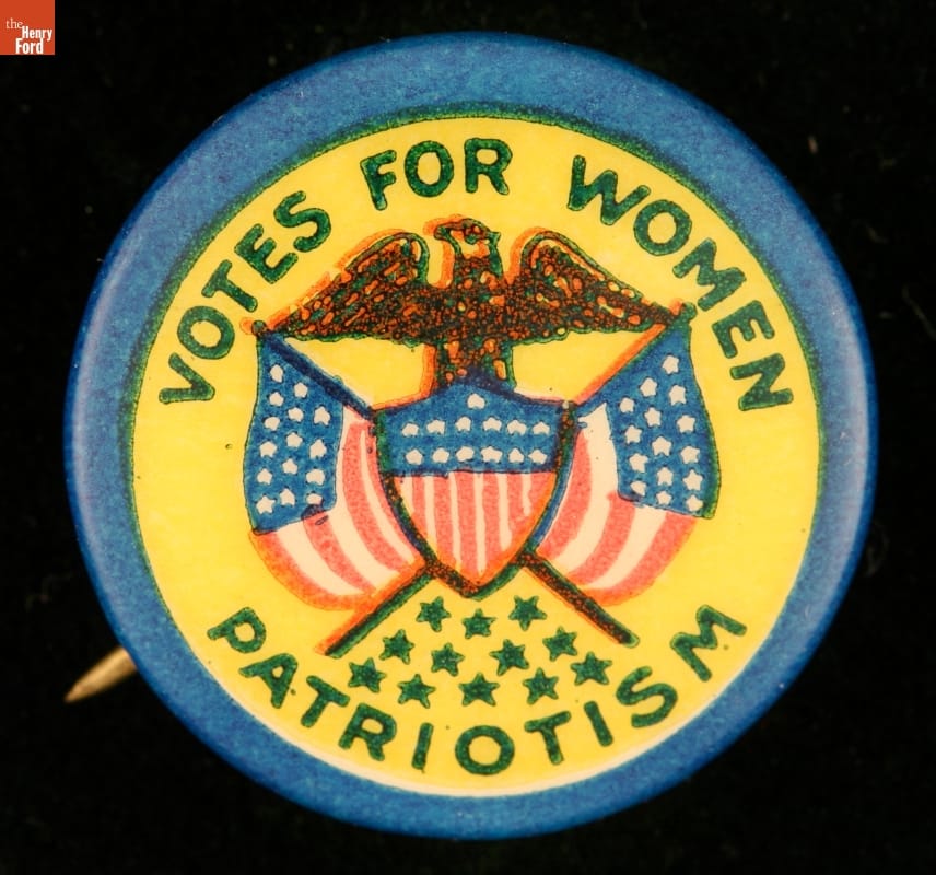 Button, "Votes for Women: Patriotism," circa 1910
