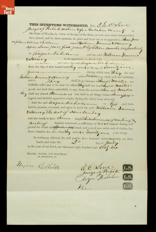 Indenture for "...Colored Children Named William, Dennis & Henry," July 20, 1866