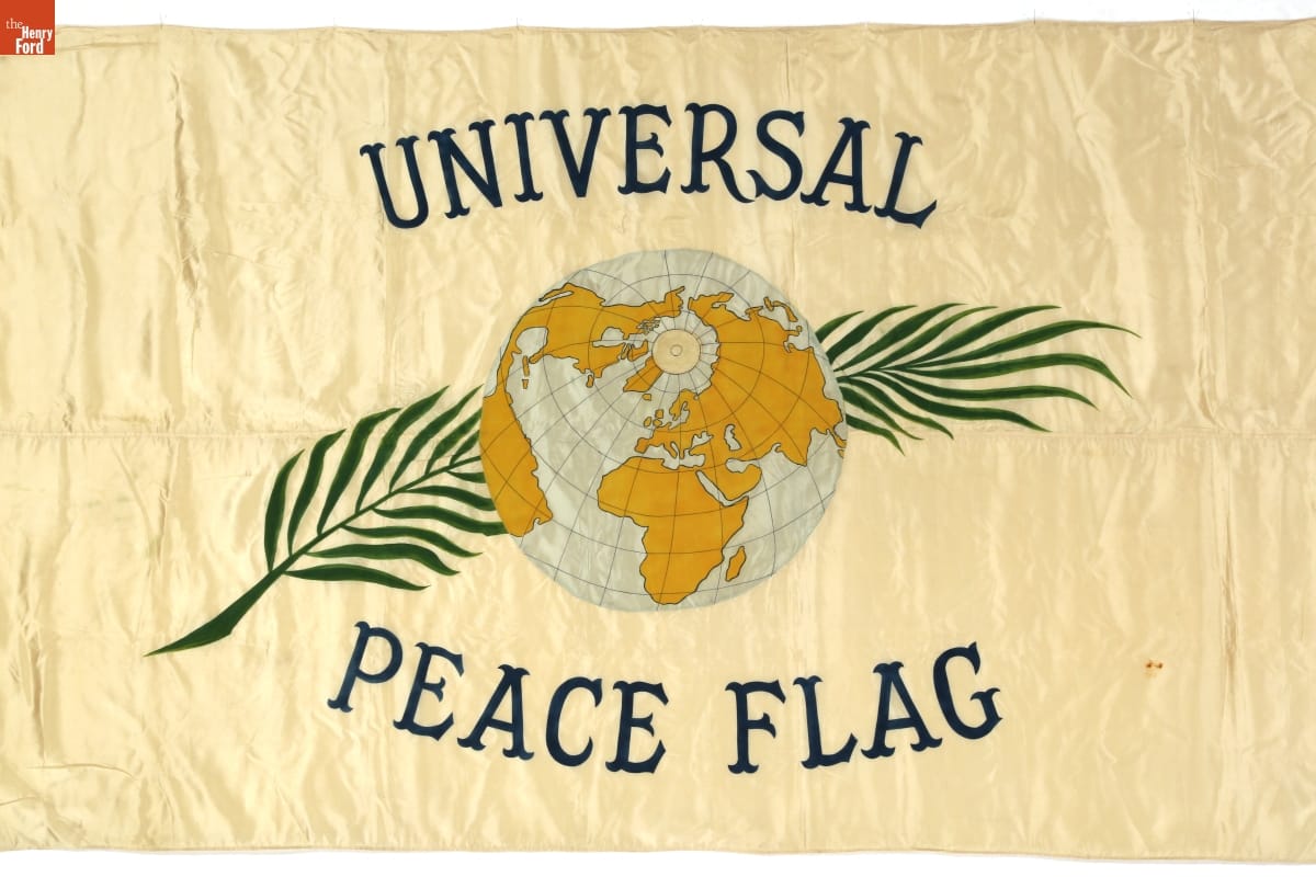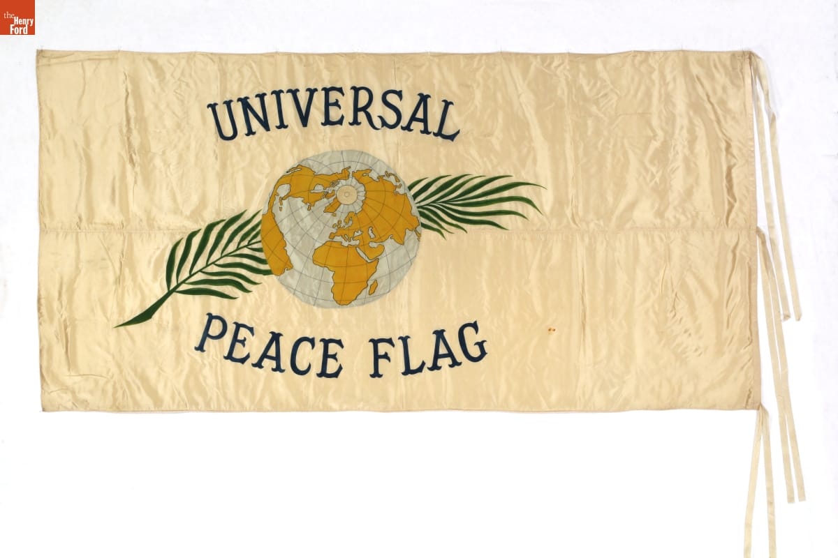 This flag was used on Henry Ford's "Peace Ship" expedition of 1915. Ford paid to sail more than 100 delegates and reporters to Europe in December 1915. His goal was to establish a conference of neutral nations that could end World War I. While the mission failed to bring peace, it brought extensive publicity to Ford and the pacifist cause.