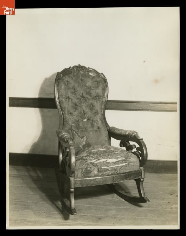 Henry Ford identified with self-made men who came from humble origins -- traits personified by Abraham Lincoln. In the late 1920s Ford began to acquire significant Lincoln-related artifacts including the chair in which President Lincoln had been sitting when he was shot. Ford clearly understood the chair's importance -- this rocker became a symbol of Lincoln's vision and personal sacrifice. Ford had the chair's arrival and unpacking filmed and photographed.