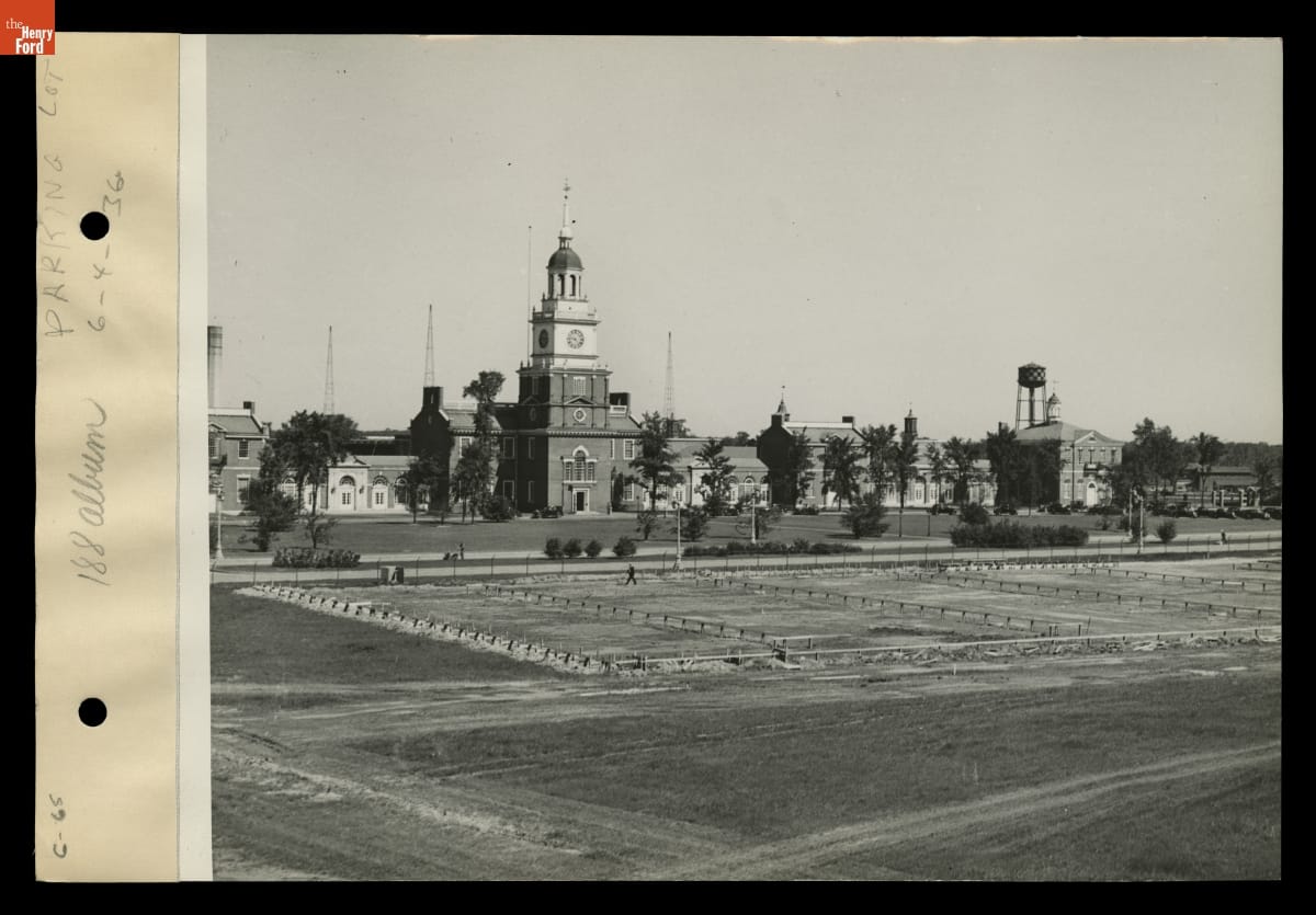 Henry Ford Museum and Greenfield Village both were initially designed to serve students at the Edison Institute Schools. There were no provisions for outside visitors. But public interest necessitated new amenities. The museum received a parking lot in 1936. Before the lot was completed, visitors parked everywhere.