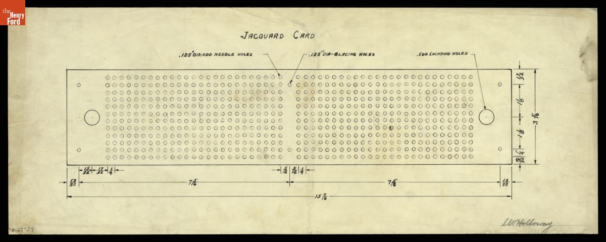 Drawing of a Jacquard Loom Punched Card, by Sidney Holloway, 1934