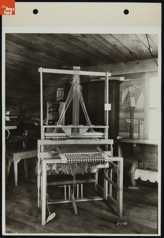 Draw Loom inside Plymouth Carding Mill (now Gunsolly Carding Mill) in Greenfield Village, Dearborn, Michigan, April 1, 1940
