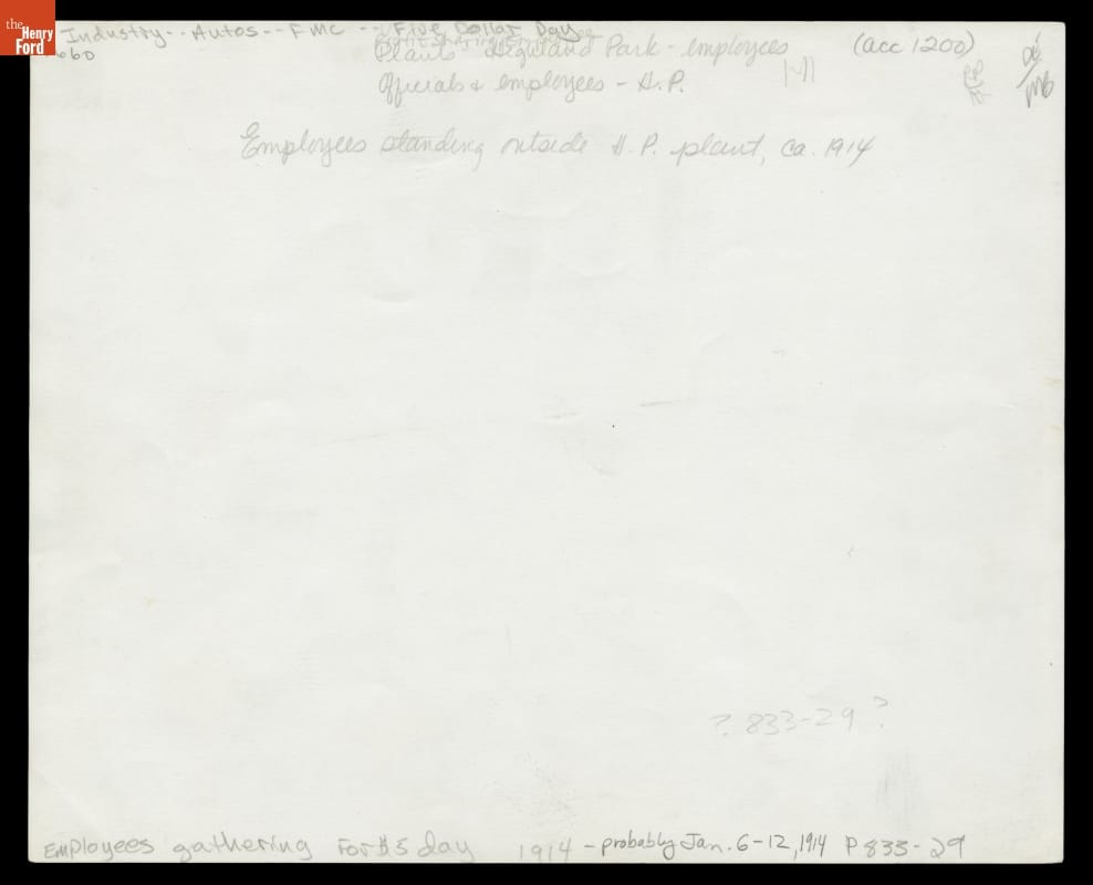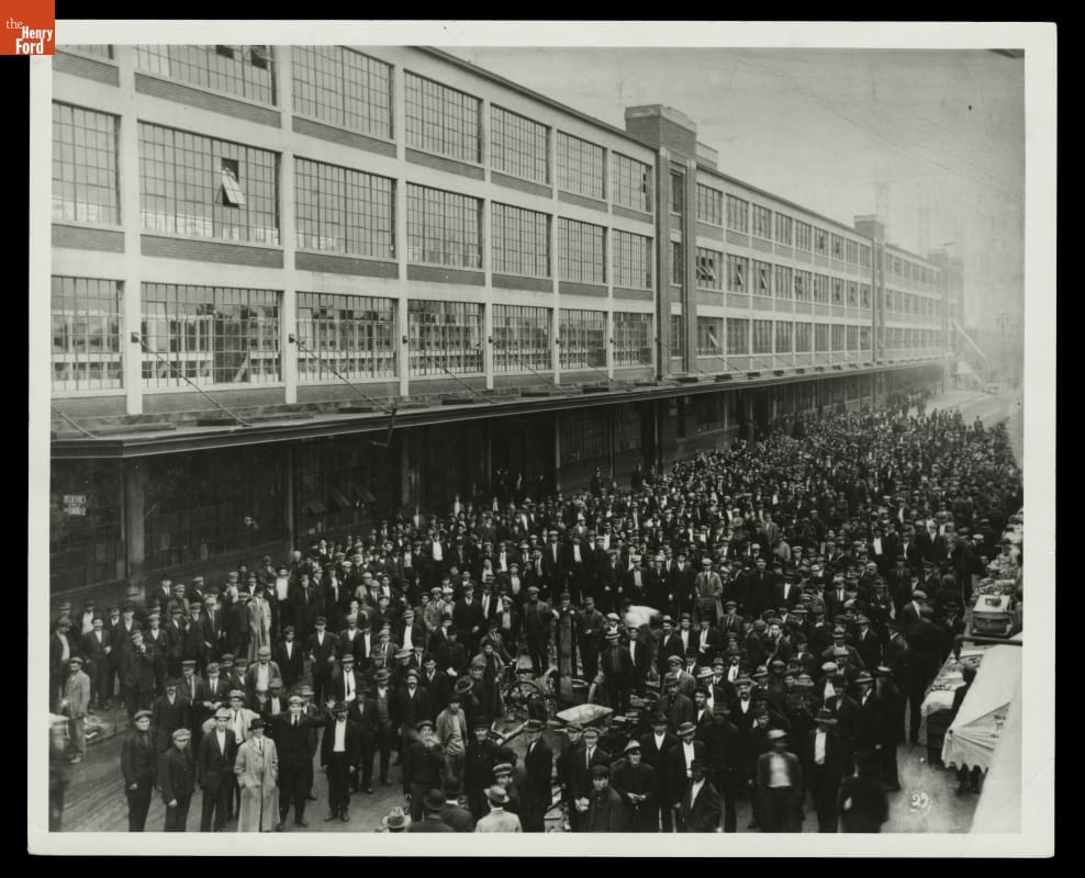 Crowd of Applicants outside Highland Park Plant after Five Dollar Day Announcement, January 1914