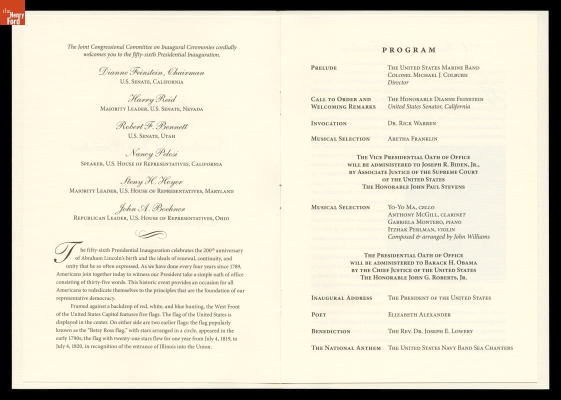 Barack Obama 2009 Inauguration Program, Enclosed with Inauguration Invitation