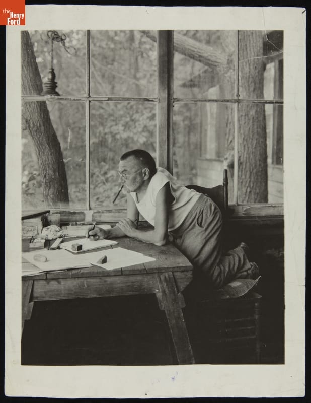 Charles Steinmetz Works in His Cabin, Camp Mohawk, Schenectady County, New York, 1922