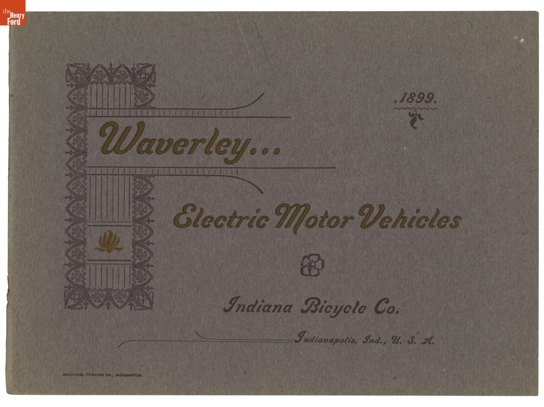Printed on front cover: Waverley / 1899 / Electric Motor Vehicles / Indiana Bicycle Co. / Indianapolis, Ind. U.S.A.