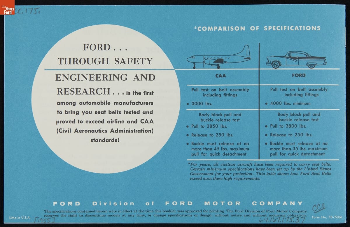 "New Ford Seat Belts, an Important Feature of Ford Lifeguard Design," 1956