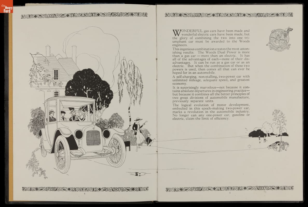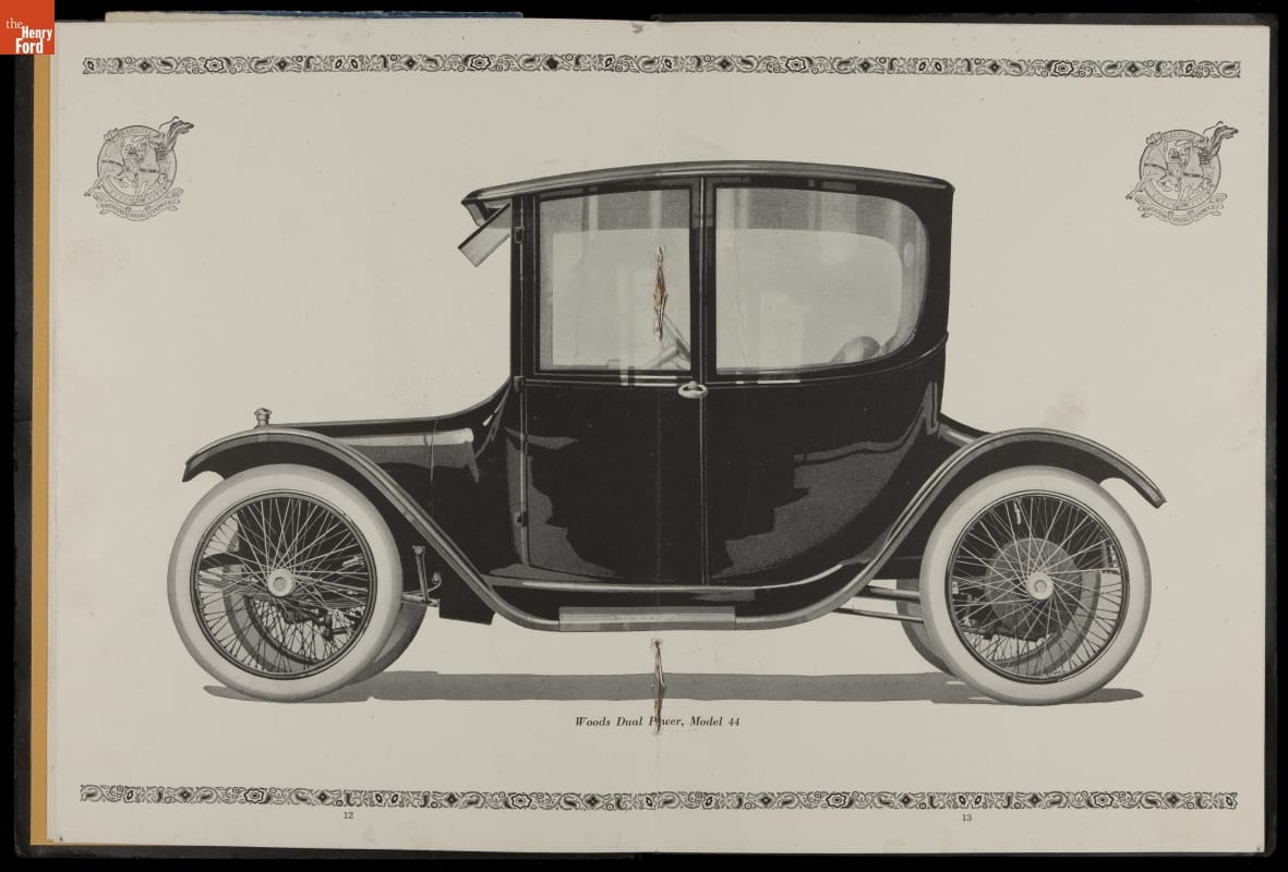 This 1916 catalog showcases the Woods Dual-Power automobile. Batteries and gasoline powered the vehicle. The Woods Motor Vehicle Company hoped to draw in buyers with the best of both power sources. It didn't work. The company failed a few years later.