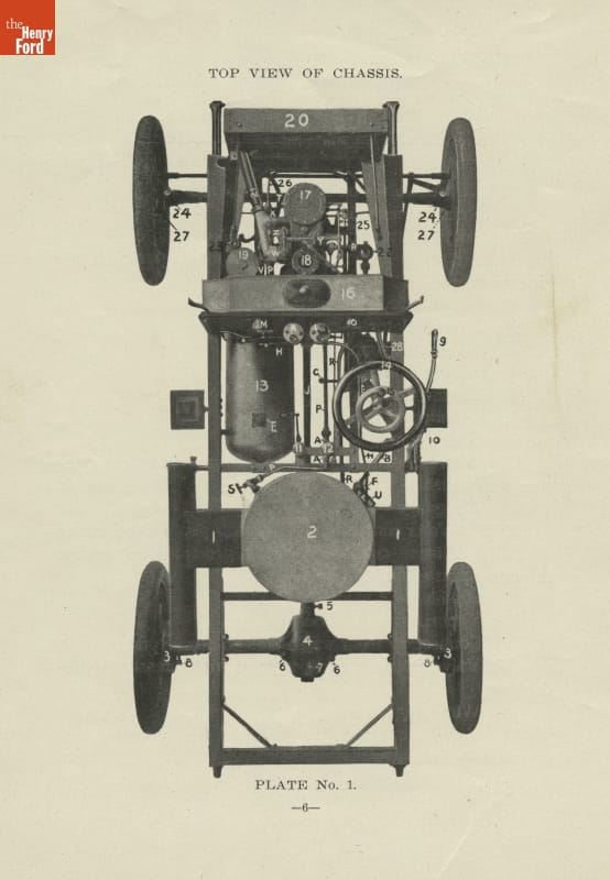 If you had never run a steam engine before, how would you know how to operate a steam-powered vehicle? This 1904 instruction manual helped owners navigate the ins and outs of the White Steam Touring car. Numbered illustrations, parts lists, and "how-to" instructions familiarize drivers with their new vehicle.