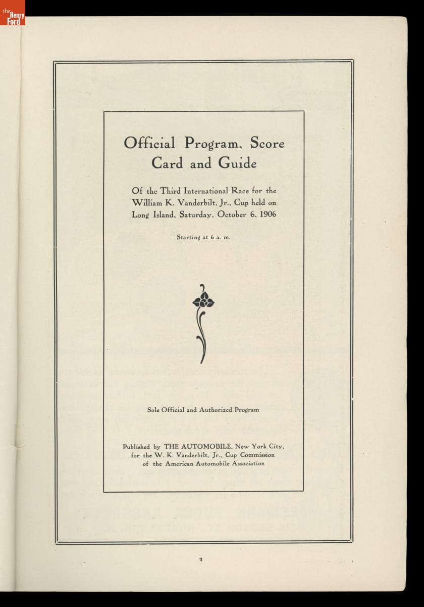 Official Program, Score Card and Guide of the Third International Vanderbilt Cup Race, 1906