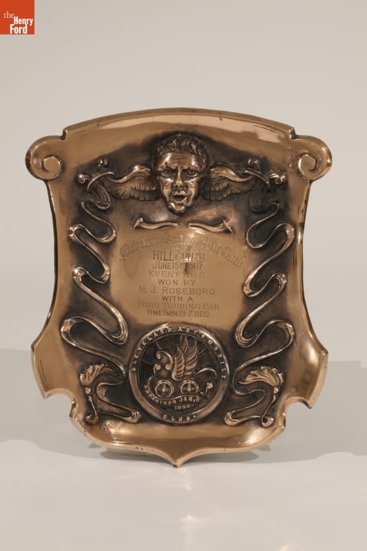 Hill climbing contests combine steep grades, hairpin turns and dangerous drops for some of the most challenging races in motorsport. Early competitions not only tested the driver's skills but showcased the practical performance of the automobile. Ford automobiles won three divisional races at the 1907 Cleveland Automobile Club Hill Climb, including this trophy won in the touring car class.