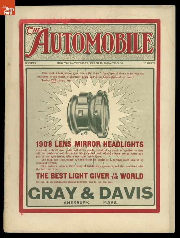 The Automobile provided readers with articles, photographs, illustrations, and advertisements about the new automotive industry. Readers of this March 1908 issue could learn about the new taximeter that kept track of trips, mileage, and fares for taxicab operators.