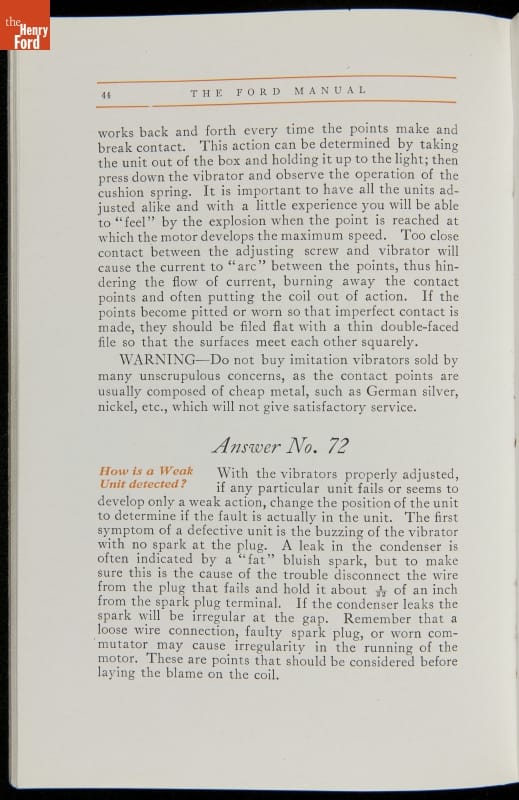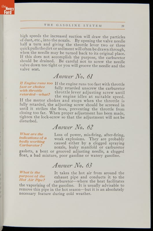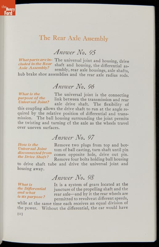 As cars became affordable and more people began using them, owners needed to know how to operate them properly. This 1914 manual helped the layperson -- without a mechanical or technical automotive background -- understand and drive the Ford Model T. Ford touted the T's simplicity, but its manual still provided over 140 answers to possible questions owners might have.