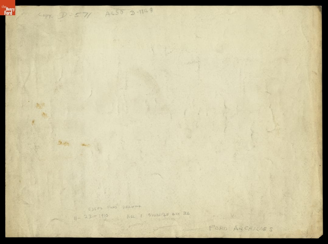 Edsel Ford created this drawing of an automobile when he was a teenager. Like many doting parents, Henry and Clara Ford saved their only child's artwork. Clara nurtured Edsel's love of art and Henry encouraged his interest in automobiles. As Edsel grew, his creative and artistic sensibilities matured and he developed a talent for automotive design.
