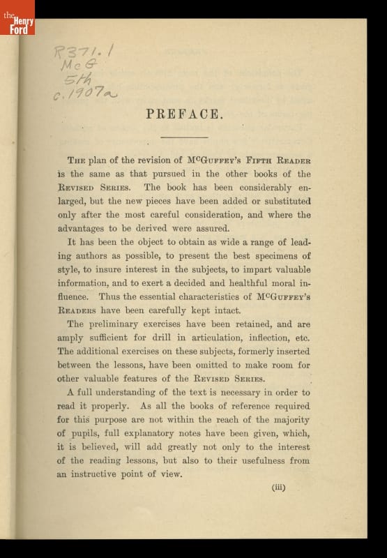 Textbook, "McGuffey's Fifth Eclectic Reader," Revised Edition 1879, Published 1907