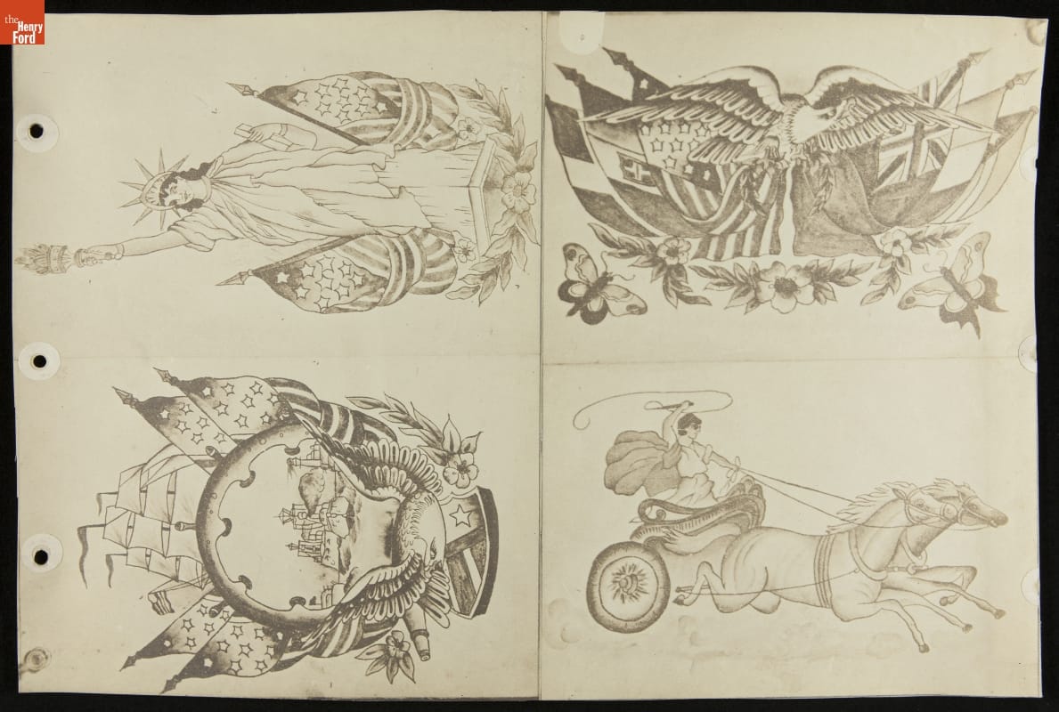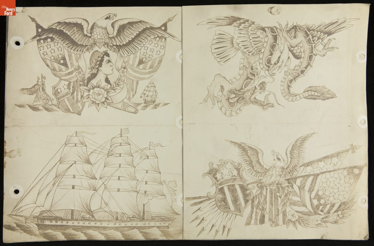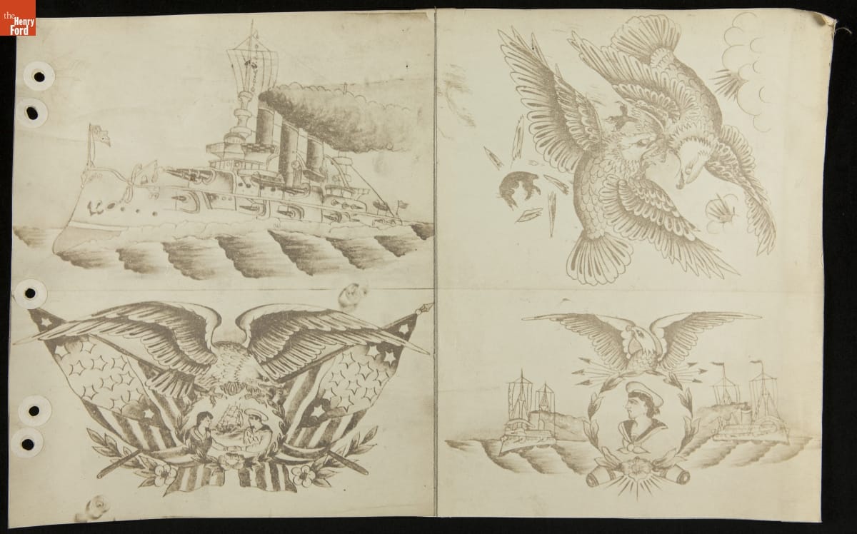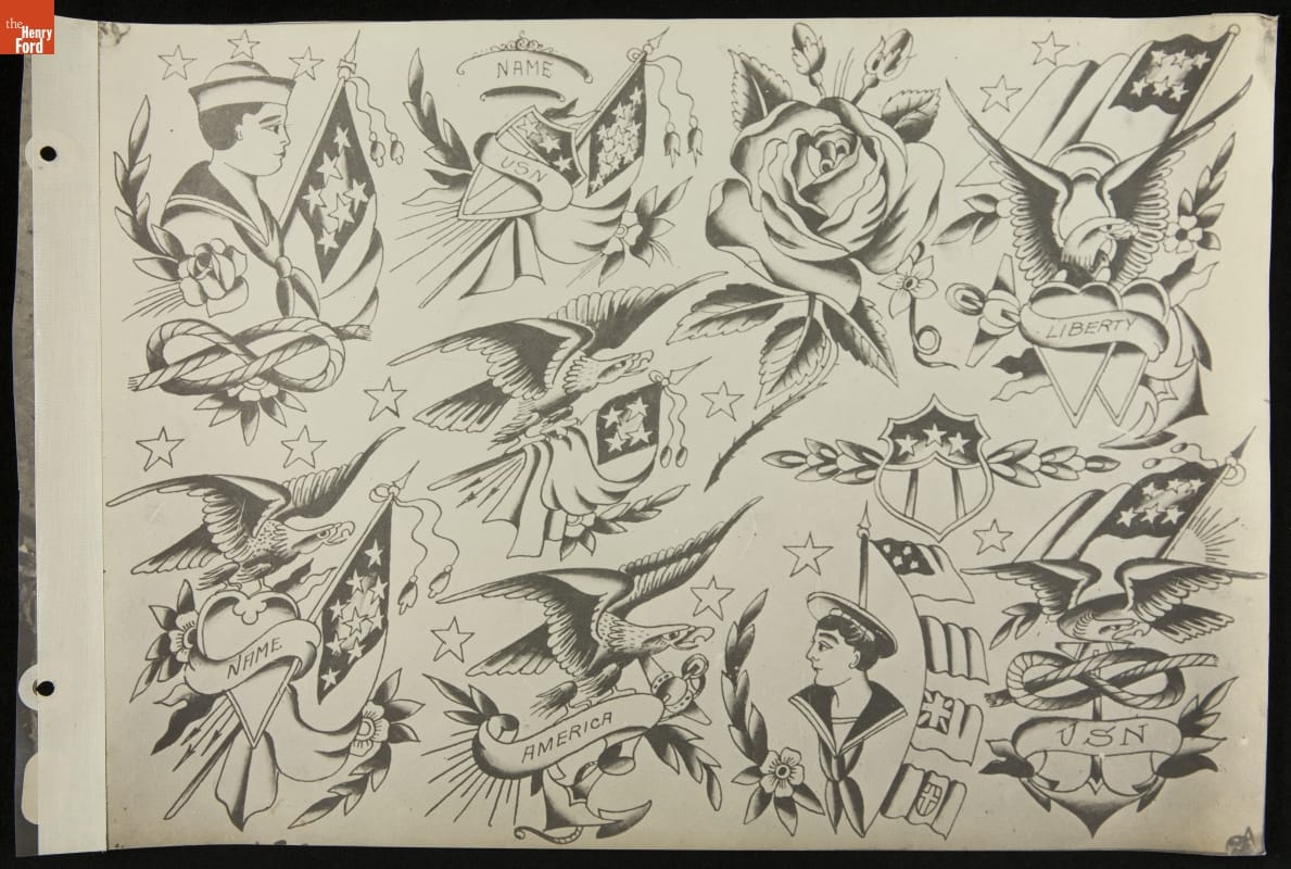 Tattoos communicate stories. Their content ranges from deeply personal and traditional--to regrettable and frivolous. In the early 1900s, "Professor" Waters apprenticed as a tattoo artist in carnivals and New York's Bowery District. He ran a successful supply shop in Detroit (1918-1939), patenting the standard "two-coil" tattoo machine in 1929. Designs from his flash sheets continue to inspire tattooists today.