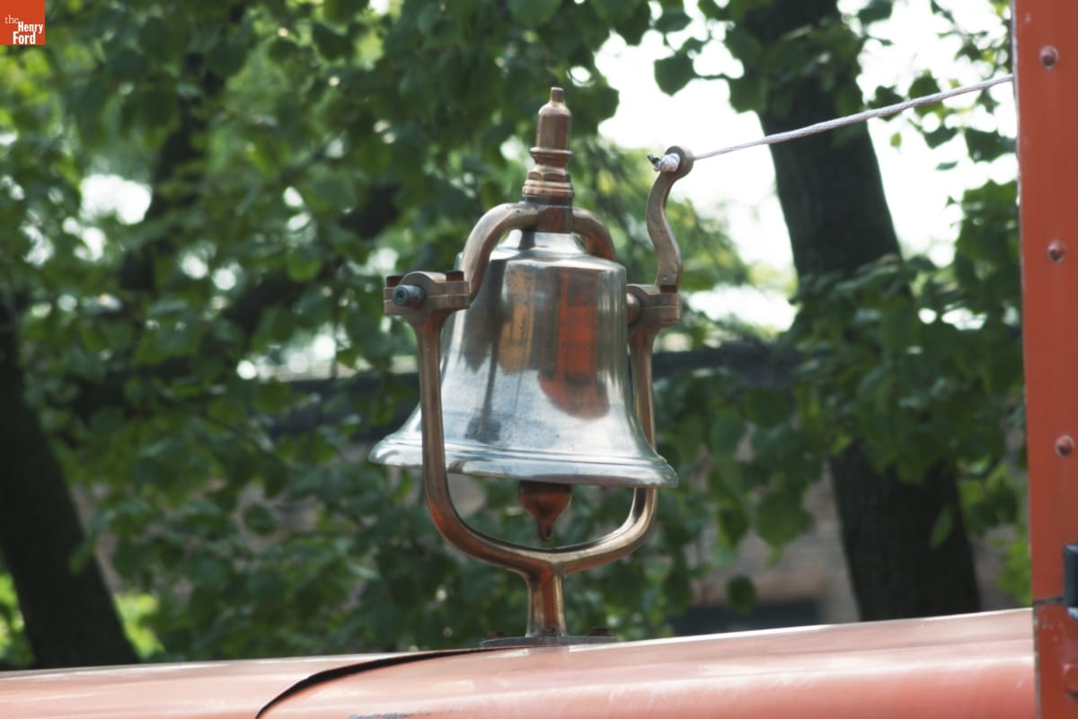 For 45 years, engineer Charles Vaughn operated the Plymouth gasoline-mechanical locomotive that shuttled coal cars around the Detroit Public Lighting Department's Mistersky Power Plant. Vaughn received the engine's bell and whistle as retirement gifts. The Henry Ford acquired the Plymouth in 1979. Vaughn's family gifted the bell and whistle to the museum in 2013 to reunite them with the locomotive.