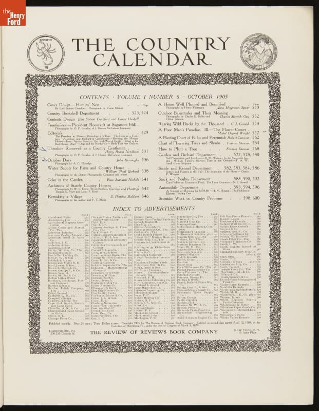 Country Calendar Magazine for October 1905, with Article by John Burroughs, "October Days"