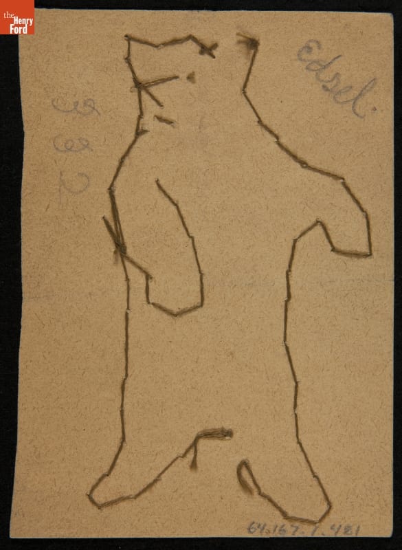 Edsel Ford created this threadwork drawing when he was a schoolboy. Like many doting parents, Henry and Clara Ford saved their only child's artwork. Clara nurtured Edsel's love of art and Henry encouraged his interest in automobiles. As Edsel grew, his creative and artistic sensibilities matured and he developed a talent for automotive design.