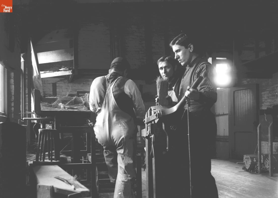 A Broom Trimmer at the Home for Blind, New York, 1890-1915
