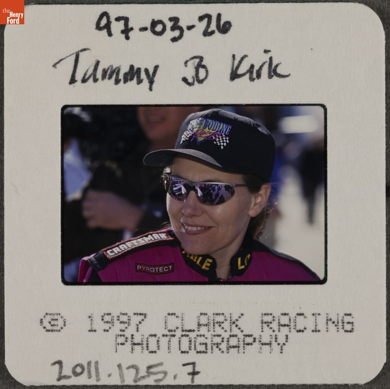 Tammy Jo Kirk raced motorcycles as a teenager, and in 1983 she was the first woman to reach a Grand National Championship final. Kirk moved to automobiles in 1989, and she joined NASCAR's southeastern regional series two years later. In 1997, Kirk became the first woman to compete in NASCAR's national truck series. She retired from racing in 2003.