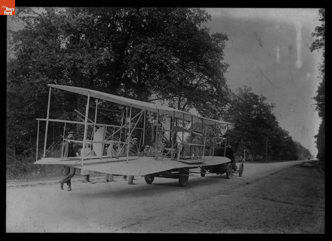French automaker Leon Bollee offered his factory and a staff of mechanics to Wilbur Wright prior to Wright's demonstration flights near Le Mans, France, in 1908. Moving the Wright airplane from Bollee's factory to the Hunaudieres race course -- and later to Camp d'Auvours, 11 kilometers from Le Mans -- required creative transportation. Once in place, Wright housed the plane in an on-site hangar.