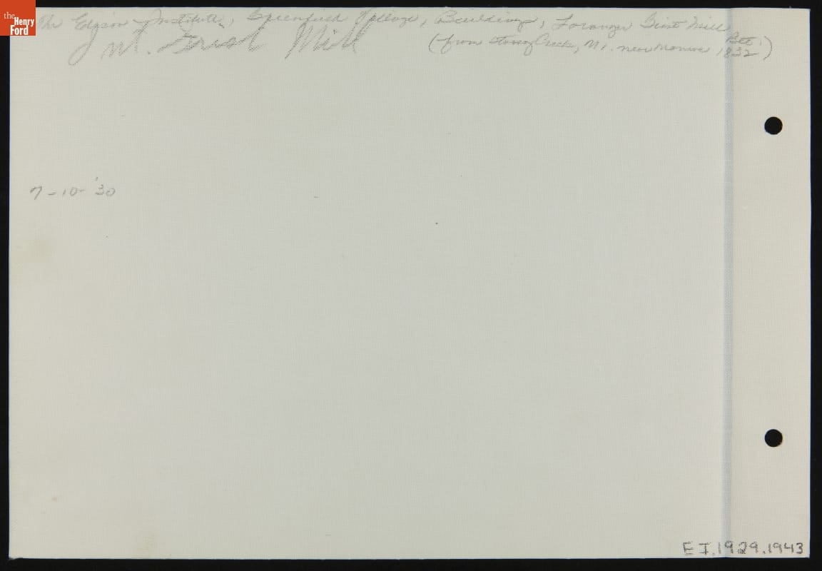 Interior View of Loranger Gristmill in Greenfield Village, 1930