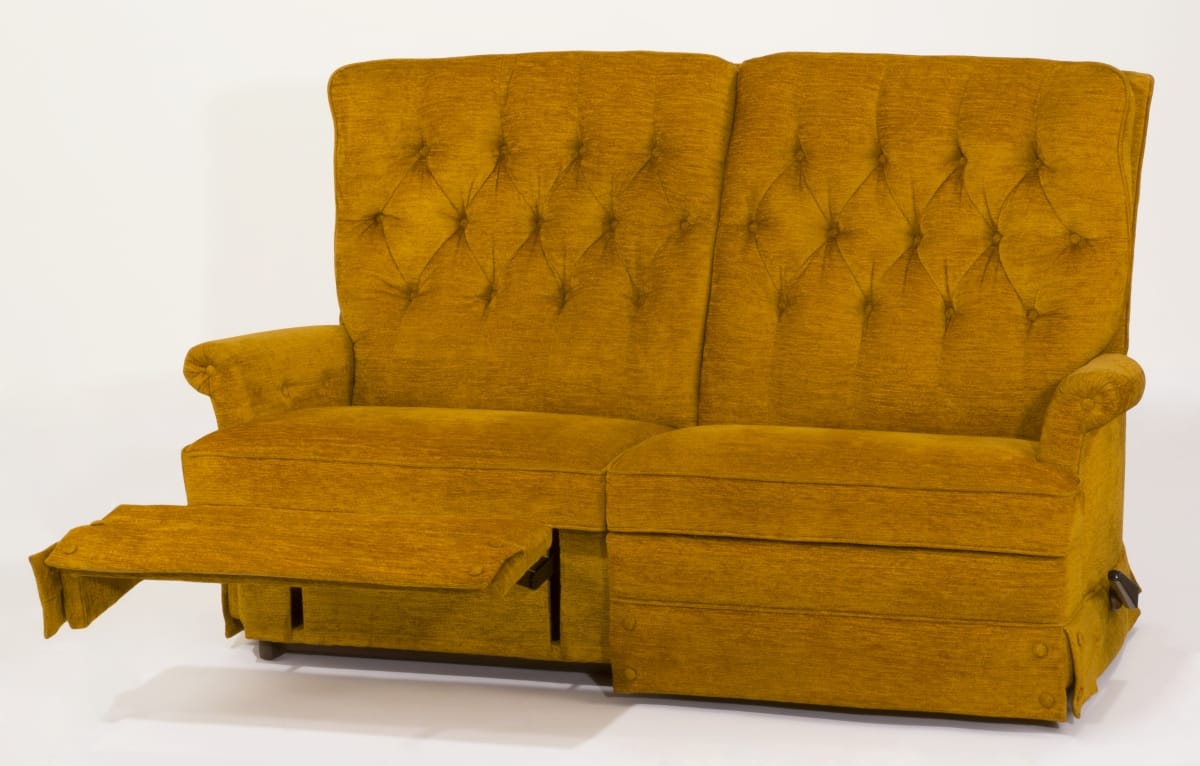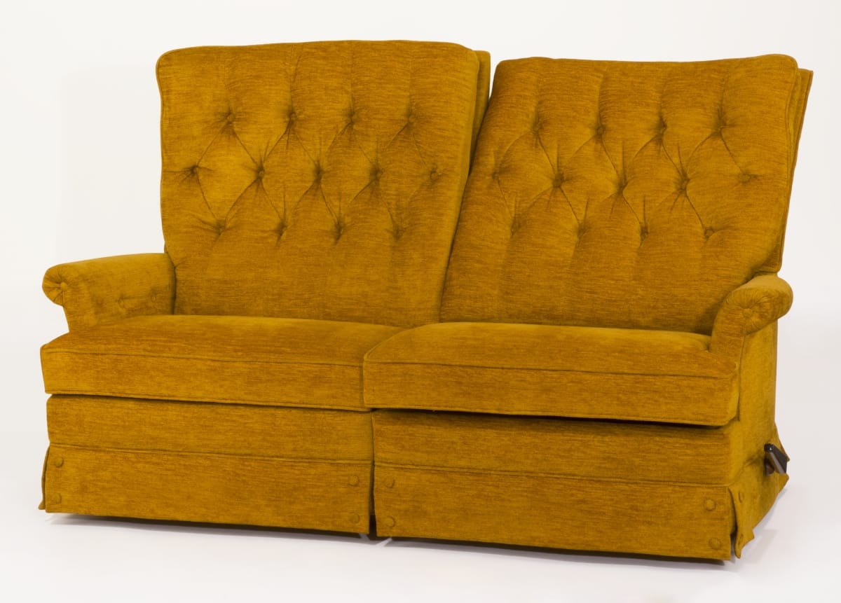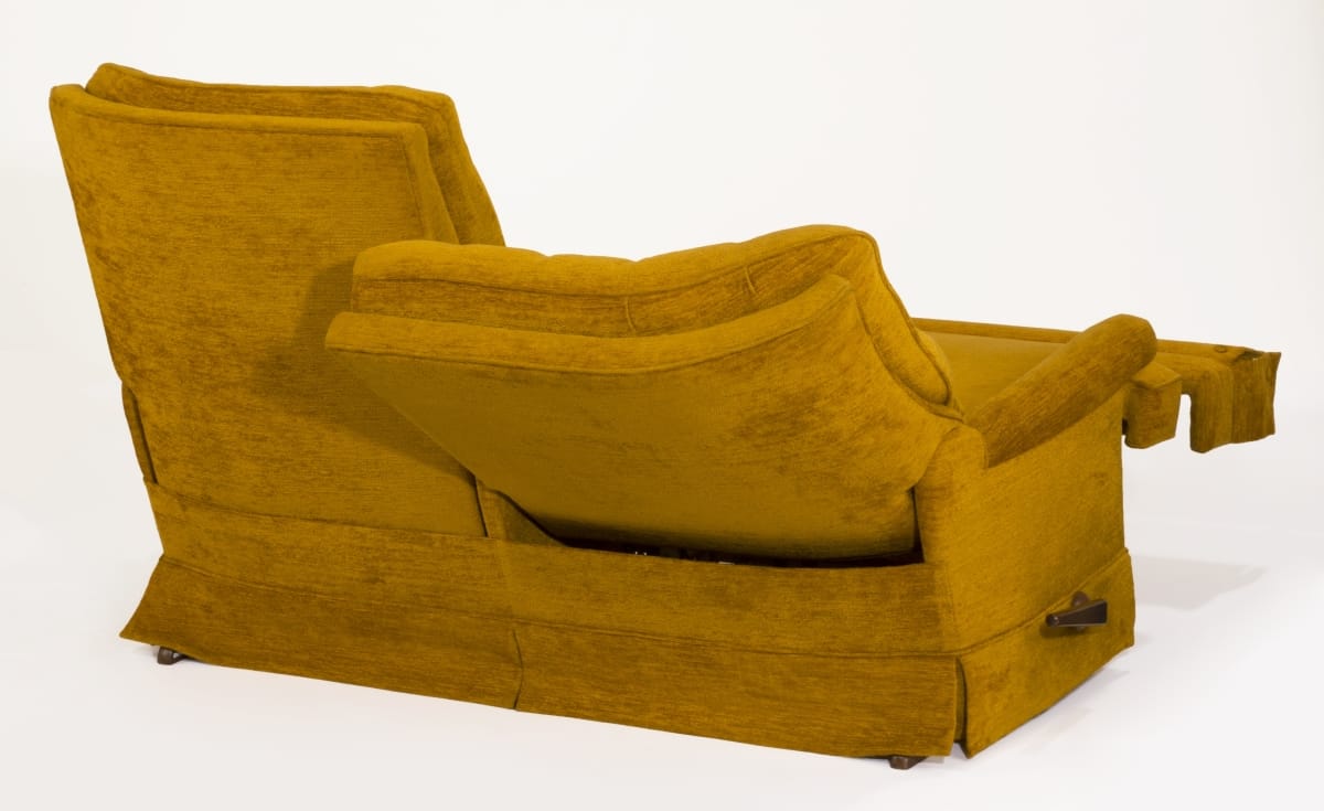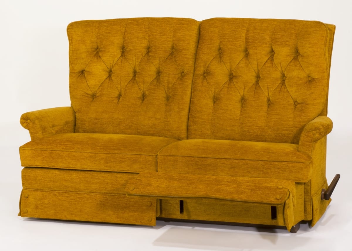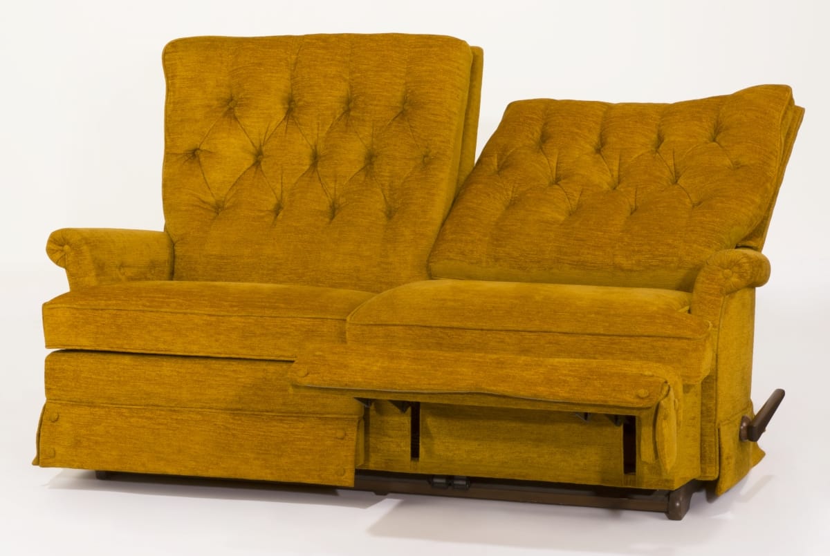 The modern conception of the La-Z-Boy recliner came about through the introduction of the "Reclina-Rocker" in 1961. It was an immediate hit. With its success, La-Z-Boy began production of other forms of reclining seating, like this sofette.
