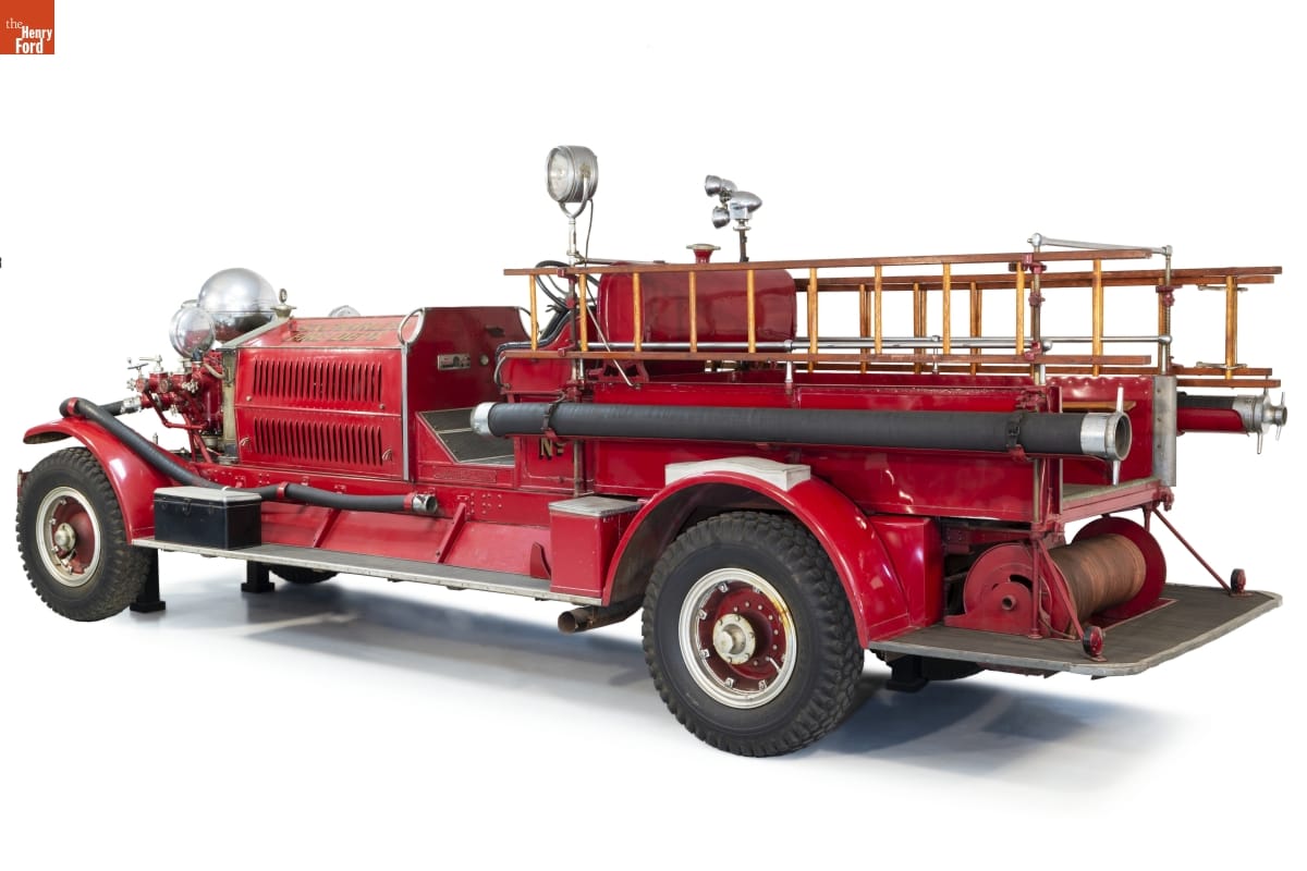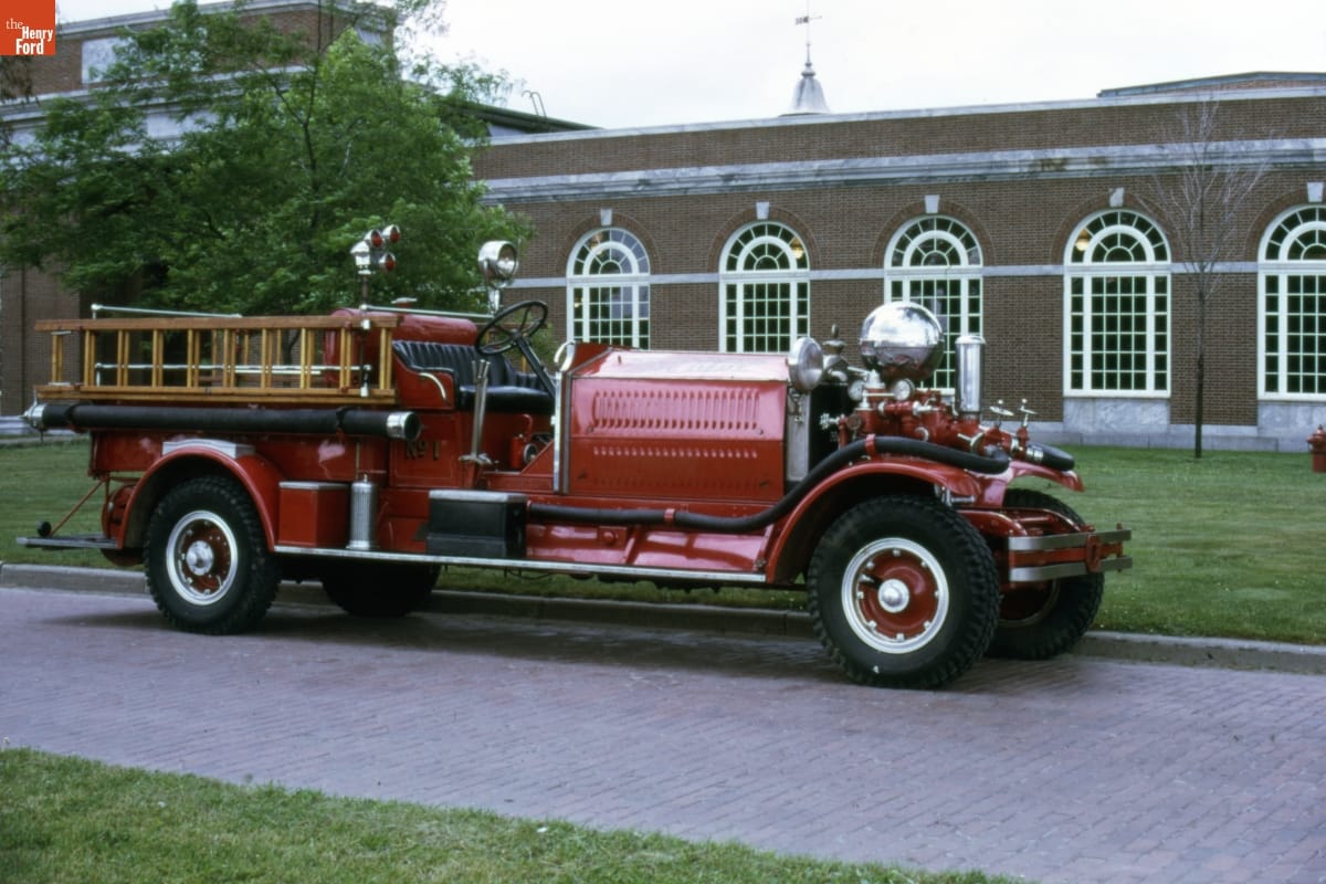 Pumper trucks from the Ahrens-Fox Fire Engine Company of Cincinnati, Ohio, were distinguished by front-mounted pumps topped with large chrome balls. Air in that ball-shaped chamber smoothed out the pulses of water delivered by the piston pump. The ball also led to an unusual complaint from some drivers: excessive glare from sunlight glinting off the shiny sphere.