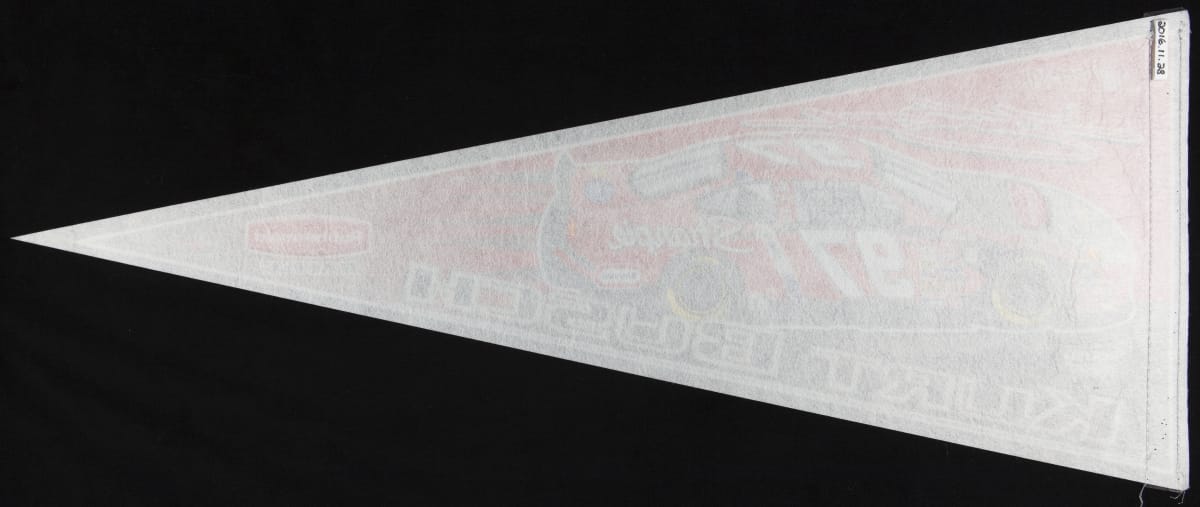 NASCAR's popularity soared in the 1990s and 2000s. With its fan base growing in size and diversity, the sport attracted new sponsors. Traditional advertisers like auto parts stores and motor oils were joined by breakfast cereals, children's toys and other family-friendly products. Cigarette brands were phased out. NASCAR-themed souvenirs, like this pennant, increased sponsors' reach beyond race day.