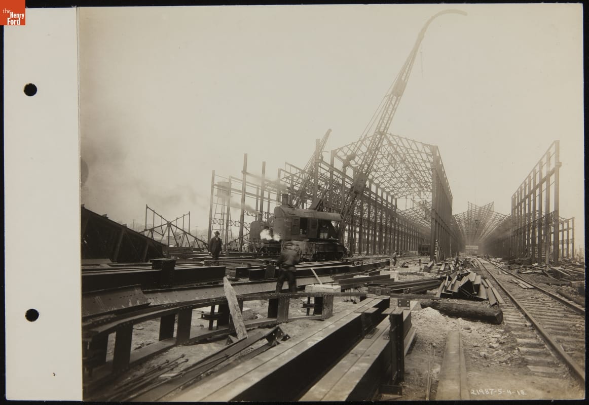 Henry Ford started purchasing land near the mouth of the Rouge River in 1915. He envisioned a new factory complex with access to water transportation and room to grow -- two things missing at Ford's Highland Park plant. Construction of the new Rouge factory started in 1917 and, in a sense, never stopped during Henry Ford's lifetime. Improvements and additions were constant.