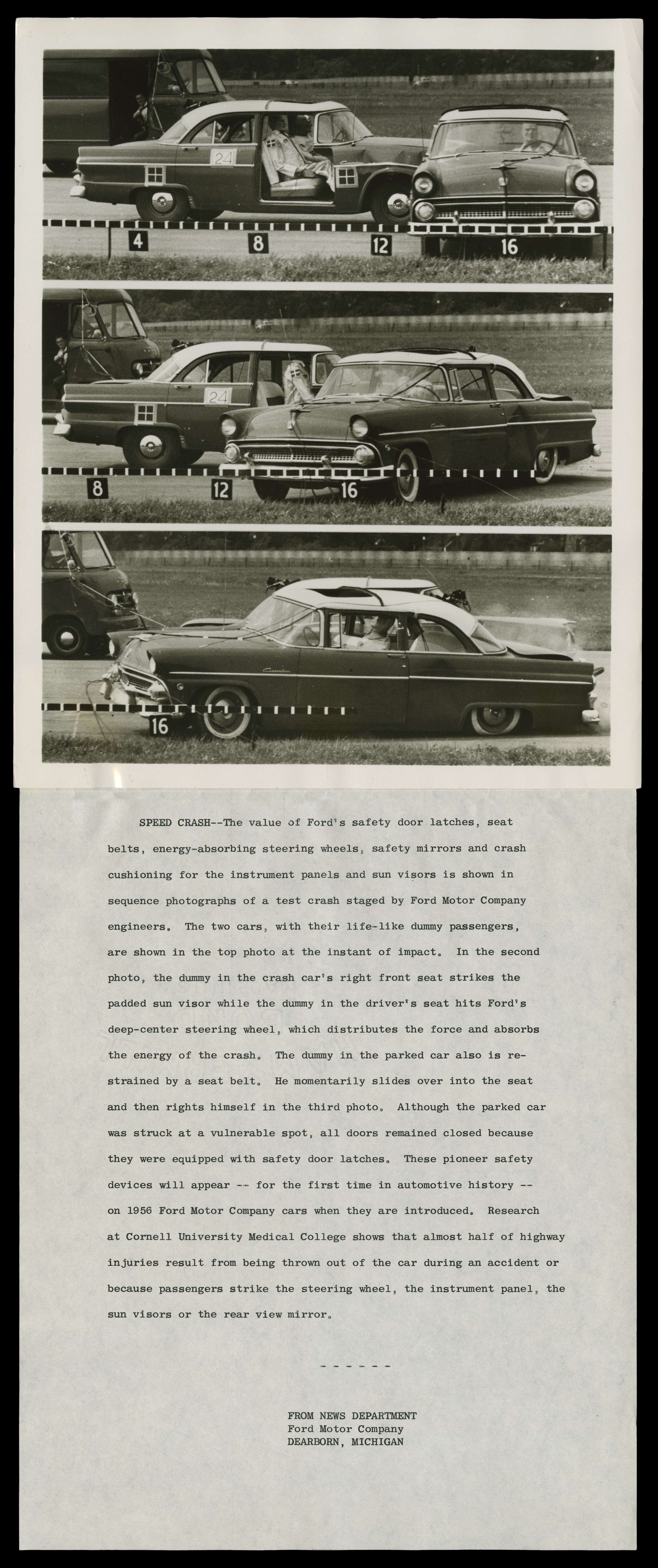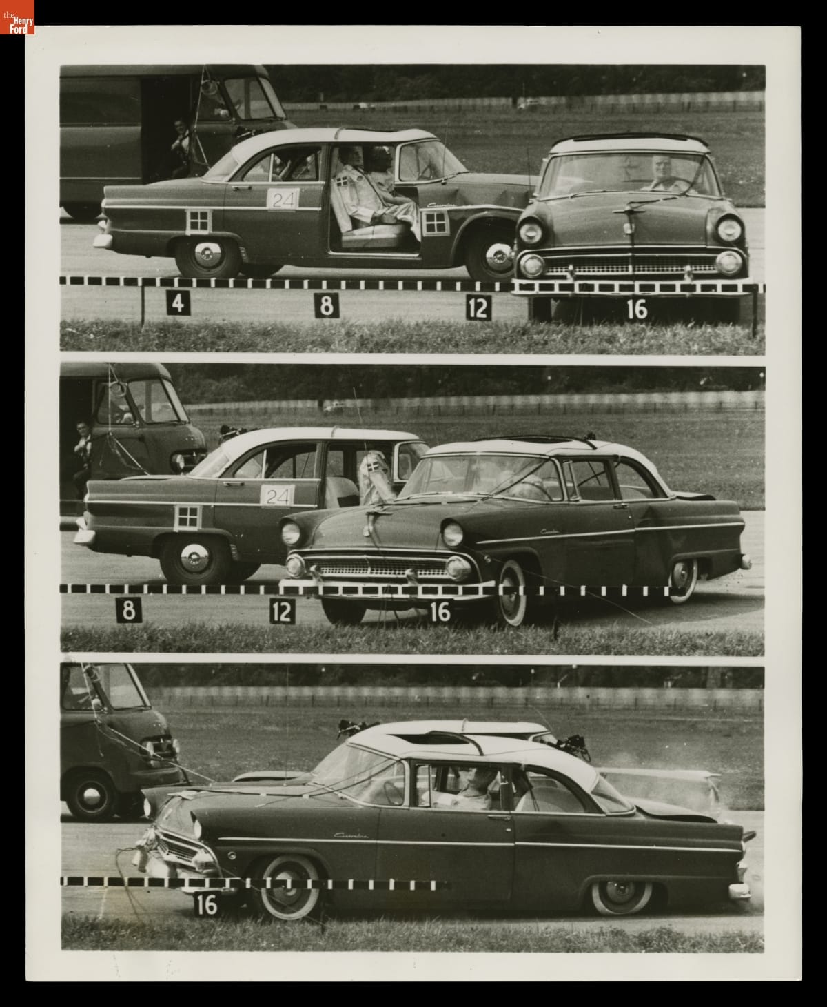 Crash Testing 1956 Ford Customline Automobiles Equipped with New Safety Features, August 1955