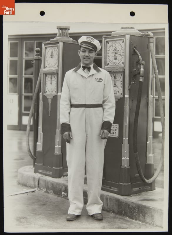 Ford Gas Station Attendant at Gasoline Pumps, December 1934