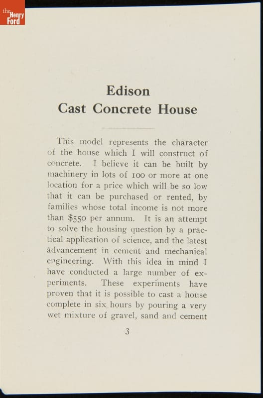 In 1899, after a failed attempt at ore mining, Thomas Edison formed the Edison Portland Cement Company. At his plant, Edison combined his mining operation's rock-crushing technology with new machinery he developed, like a more efficient cement kiln. These innovations drove overproduction in the cement industry, leading Edison to propose a radical use for the excess product -- concrete houses for working class families.