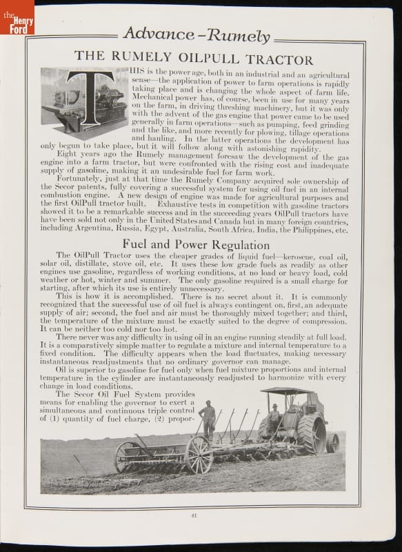 Commissioned by Advance-Rumely Thresher Co. of LaPorte, Indiana. Printed by Magill-Weinsheimer Company of Chicago, Illinois.