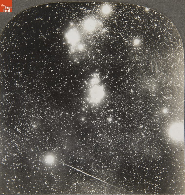 Americans loved stereographs -- millions were made from the mid-1800s through the 1930s. A stereograph consists of two offset photos that appear to have three-dimensional depth when viewed through a stereoscope. These images entertained and educated. Stereographs could transport viewers to distant events, exotic places, and even worlds beyond, like this image of the Orion constellation.