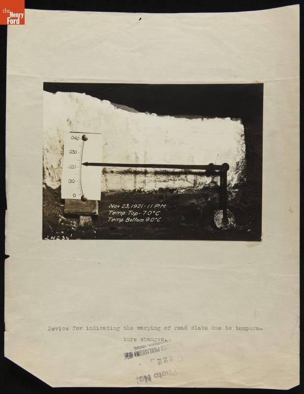 Device for Indicating the Warping of Road Slabs Due to Temperature Changes, 1921-1922