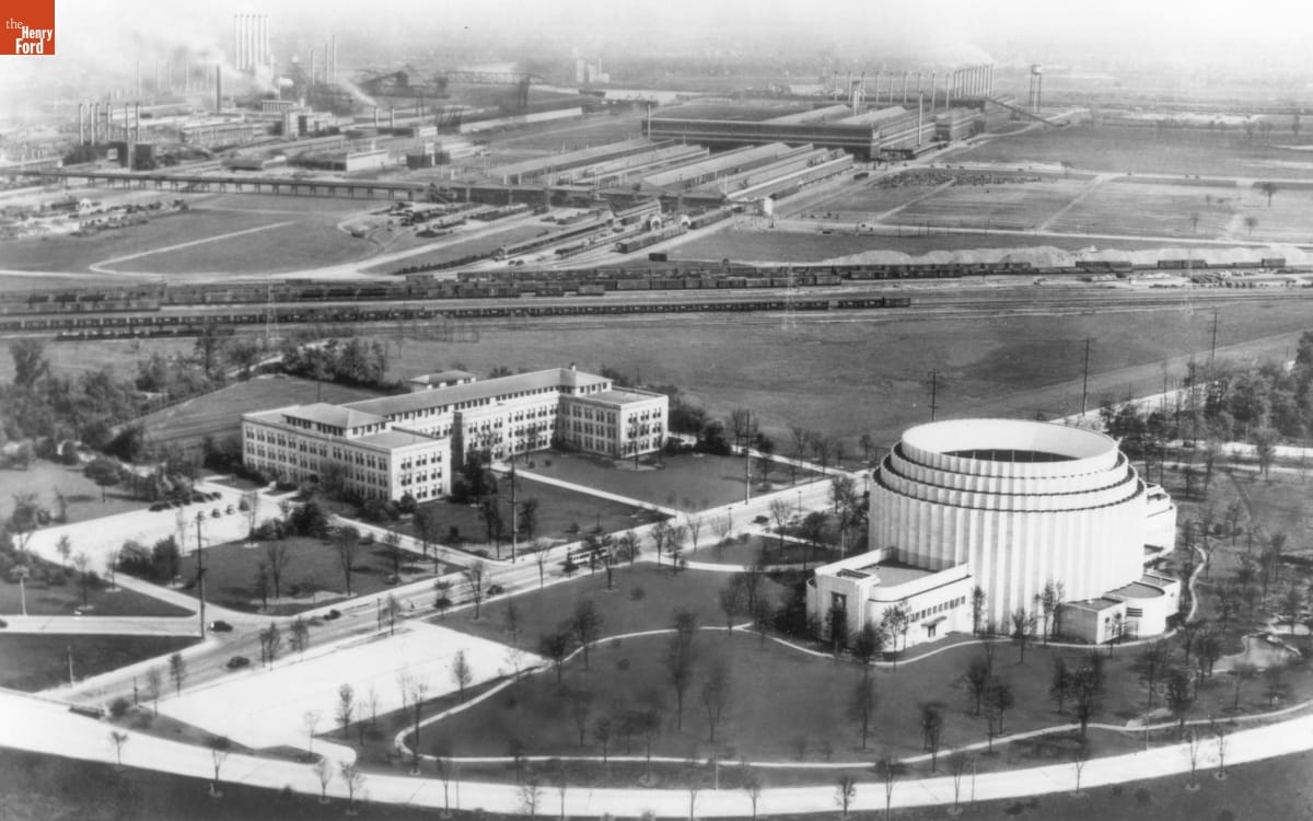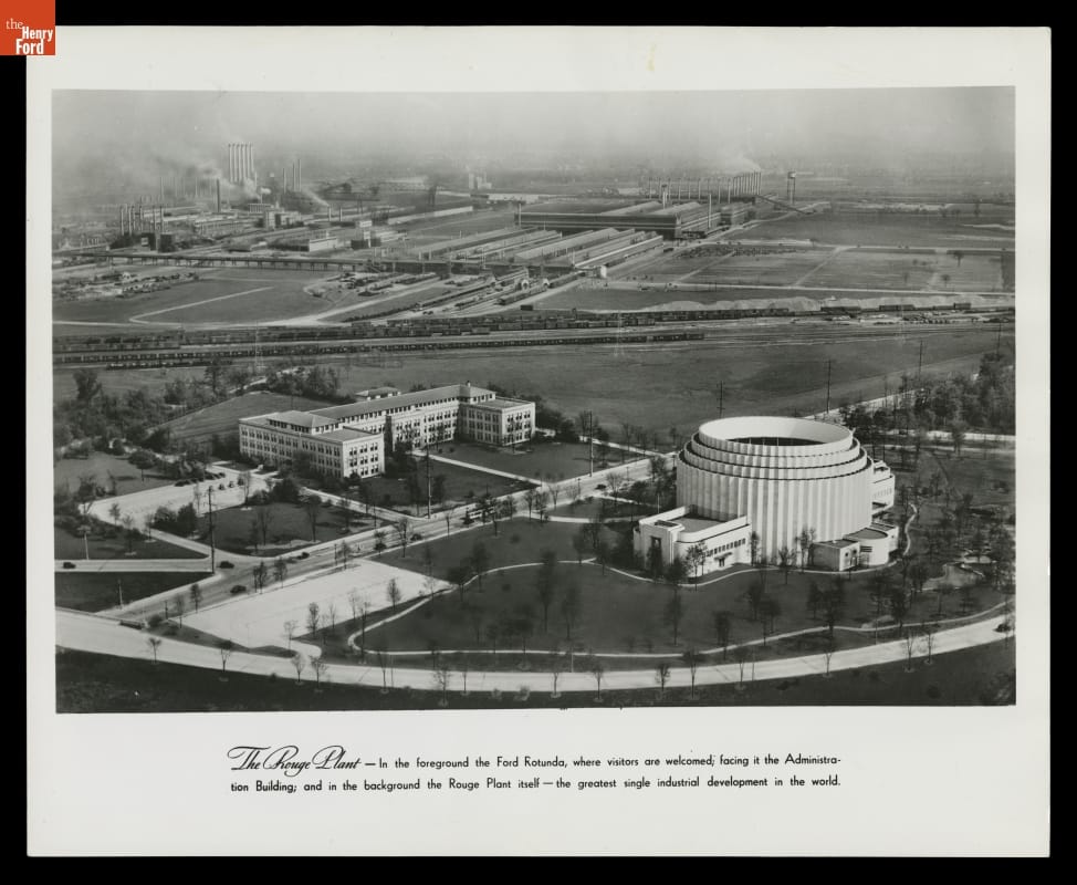 Aerial View of Ford Rotunda, Ford Rouge Plant and Administration Building, Dearborn, Michigan, 1936