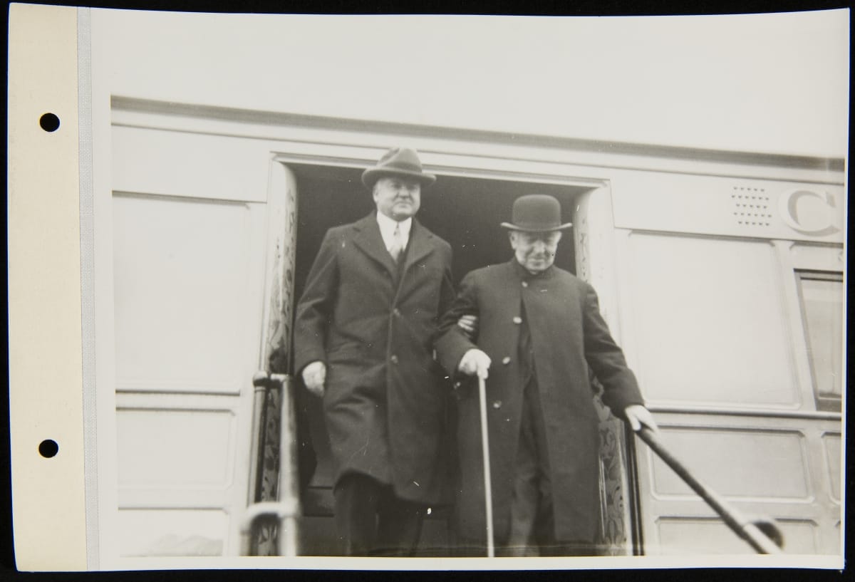 President Herbert Hoover Escorts Thomas Edison from "The President" Train at Smiths Creek Station, October 21, 1929